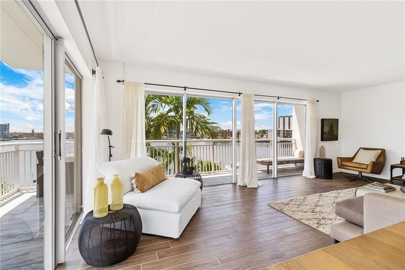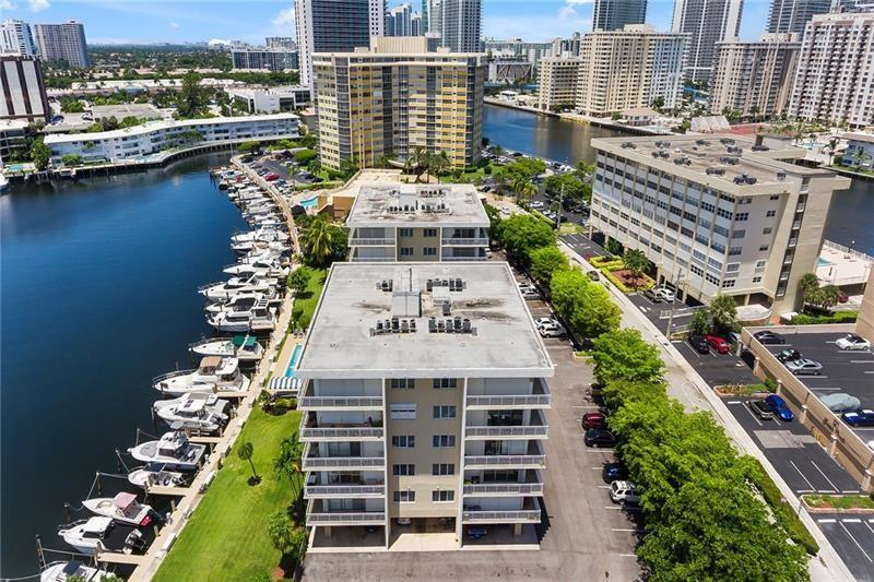 Welcome home, waterfront lovers! Gorgeous, remodeled, light-filled, southwest-facing unit boasting modern, Scandinavian charm. This 2-bd, 2-bath unit has a wrap-around balcony with SPECTACULAR waterfront views. Recently updated with new AC units, recessed lighting, porcelain floors, impact windows in the bedrooms, and quartz countertops. Free laundry is conveniently located across the hall. This building has great outdoor space with a communal pool, barbecues, and expansive outdoor entertainment space. Only a mile away from Hallandale Beach and within close proximity to the many shops and restaurants in Gulfstream Park!