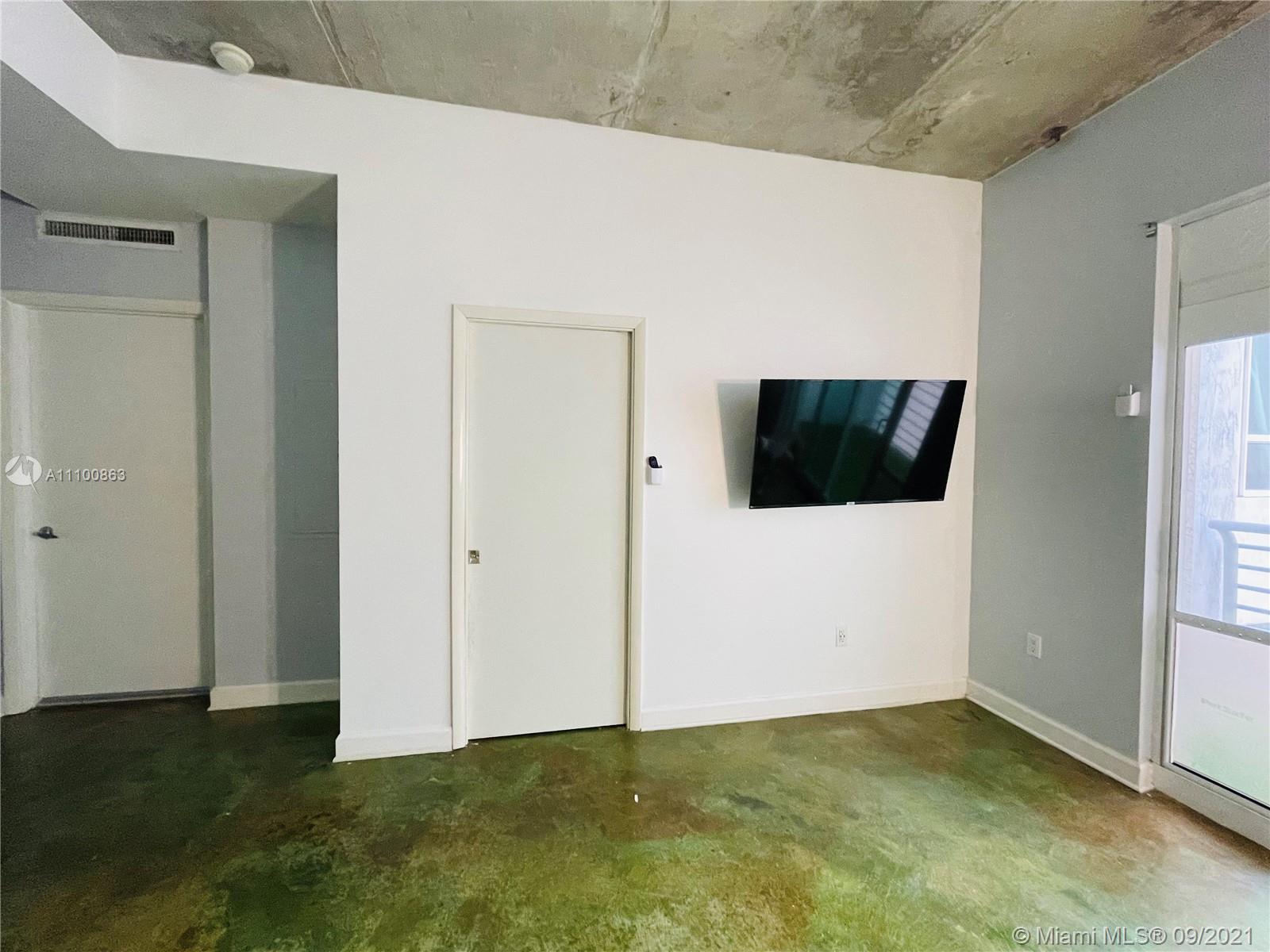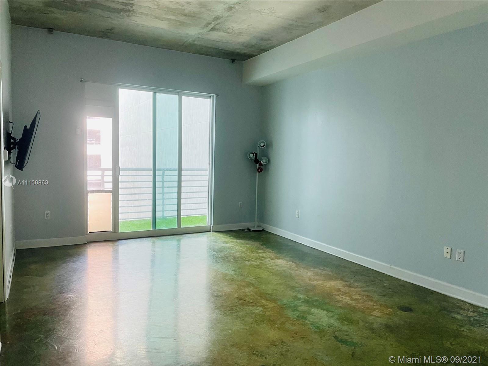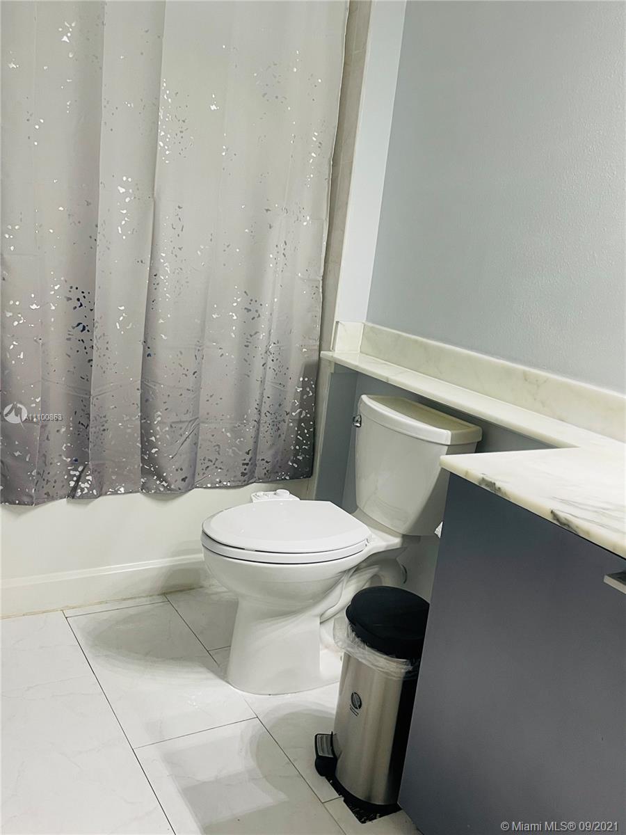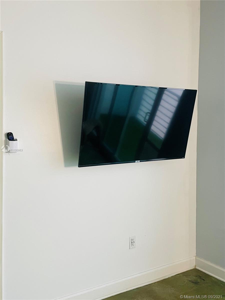 Beautifully updated and well-kept modern unit on the 8th floor. This one bedroom and one bathroom unit offers: concrete and tile floors, freshly painted walls; new air conditioner, smart Ecobee thermostat with Alexa; new smart LG washer and dryer; a clean white, silver: grey backsplash, trash cabinet; new kitchen and bathroom faucets; newly installed toilet; new dimmable bathroom lighting. The bedroom was recently enclosed with a full partition wall and door for privacy and total darkness to sleep, including a motorized shade. The bedroom closet has ELFA organizers and recently installed doors. The bedroom and living room include smart Roku TVs and Philips Hue lighting. Hurricane impact door and window. Bonus: balcony doggy door. The balcony is covered in beautiful, faux green grass.