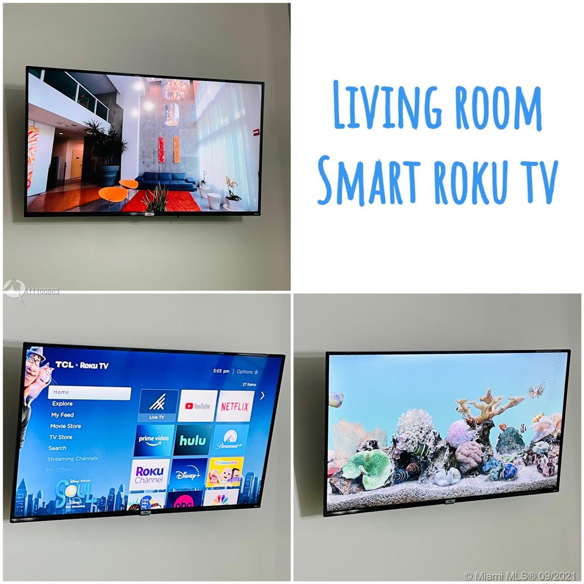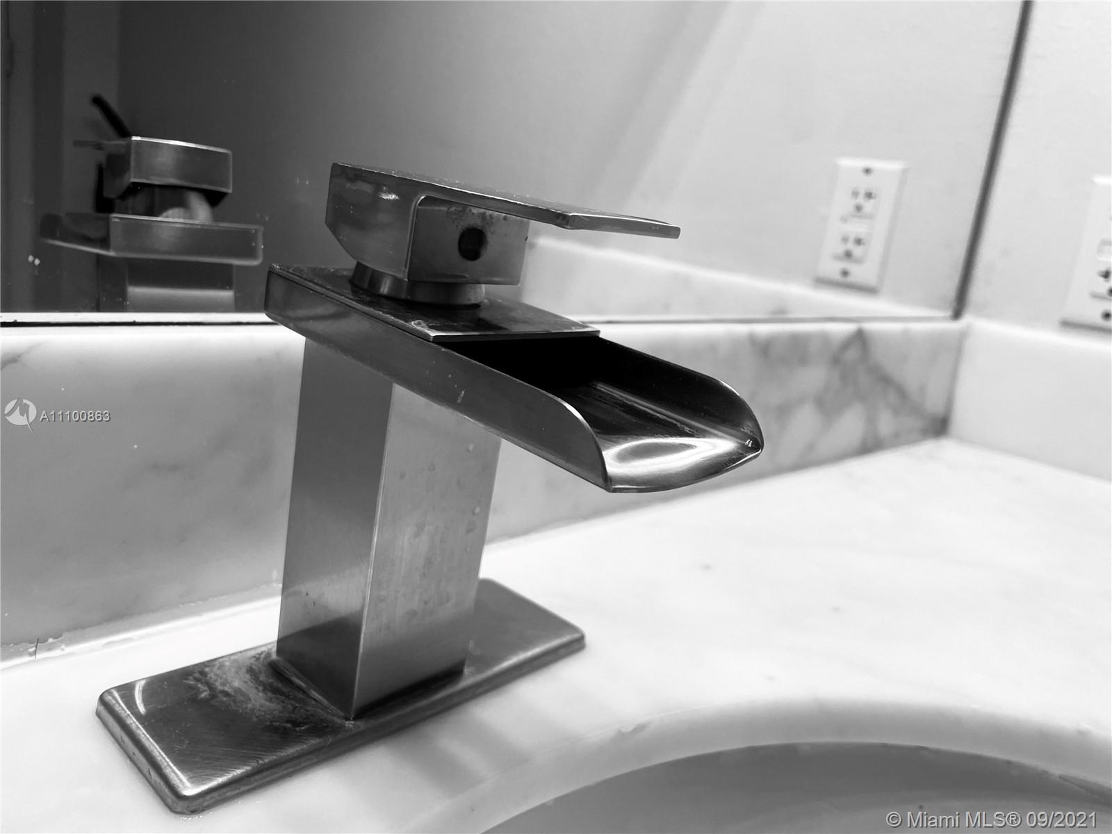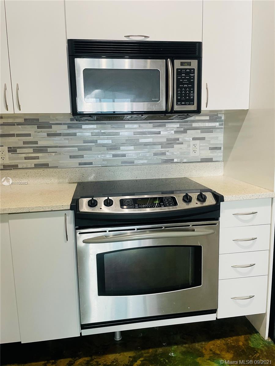 Beautifully updated and well-kept modern unit on the 8th floor. This one bedroom and one bathroom unit offers: concrete and tile floors, freshly painted walls; new air conditioner, smart Ecobee thermostat with Alexa; new smart LG washer and dryer; a clean white, silver: grey backsplash, trash cabinet; new kitchen and bathroom faucets; newly installed toilet; new dimmable bathroom lighting. The bedroom was recently enclosed with a full partition wall and door for privacy and total darkness to sleep, including a motorized shade. The bedroom closet has ELFA organizers and recently installed doors. The bedroom and living room include smart Roku TVs and Philips Hue lighting. Hurricane impact door and window. Bonus: balcony doggy door. The balcony is covered in beautiful, faux green grass.