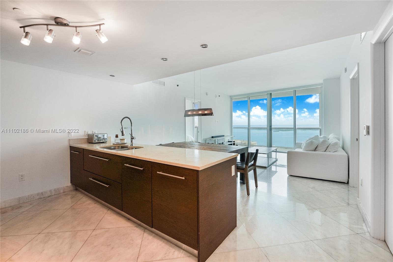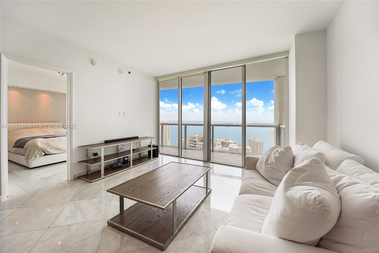 Amazing price in the highly desired "07". Breathtaking views from this impeccable 2 bedrooms + den/ 2 bathrooms. Direct views on the Bay, Brickell Key and Port of Miami from the 40th floor. Unit features white marble floors, electric black out shades in every room and California closets. The amenities include, 24 hr front desk service, valet, high end spa, fitness center, infinity pool on-site restaurants and more.