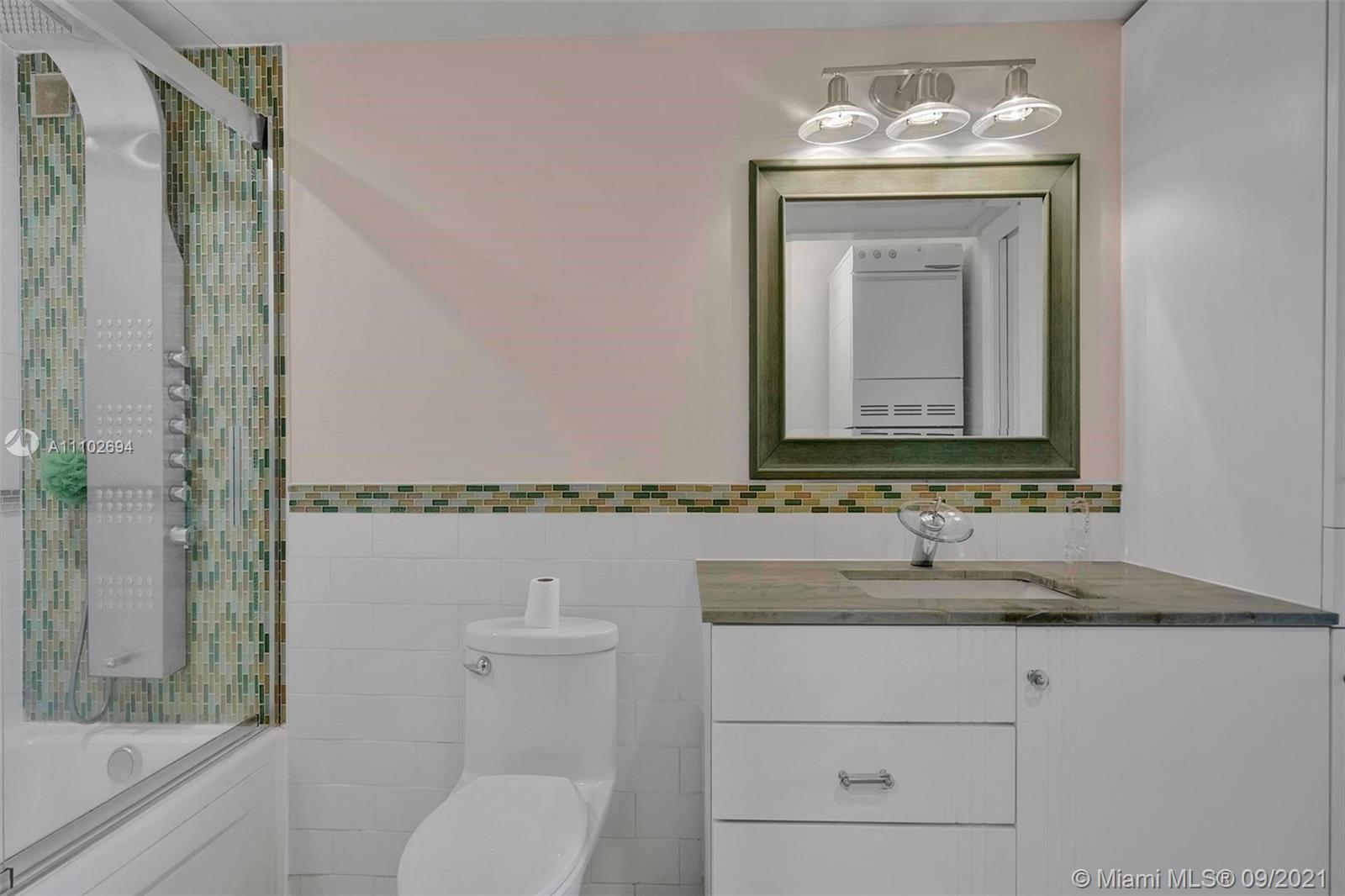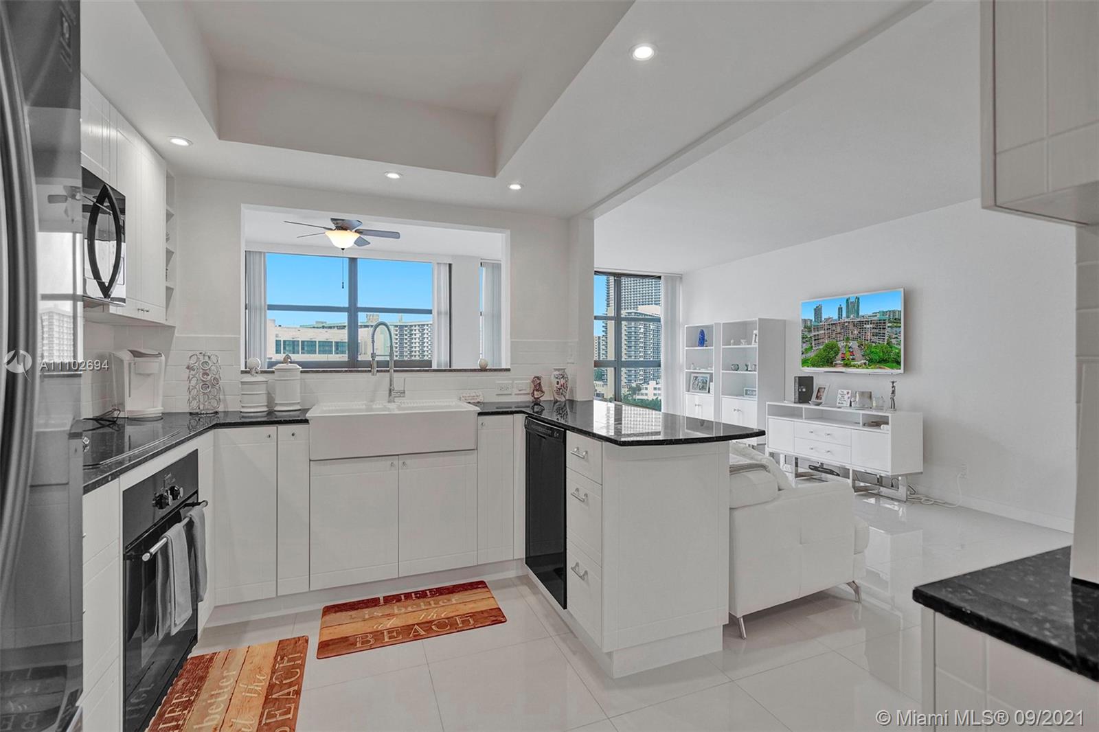 Wow, Wow Wow! Wide intercoastal waterway views from the panorama floor to ceiling windows in every room in this AMAZING totally rehabbed apartment. Super sleek ultra modern finishes abound in this fantastic unit throughout. If you're looking for an open concept space this one's for you! This gourmet, open-kitchen features a serve-through, so you can see the water from the center of the kitchen, as well as a recently installed Samsung Fridge, 42' cabinets with tons of storage, farmhouse style sink & upgraded fixtures, & beautiful granite countertops. Sleek tile flooring throughout the unit. Large master bedroom with huge walk in closet. 2 security entries with manned staff, tennis courts, library, pool. Close to tons of dining, points of interest, & a short bike ride from the beach!