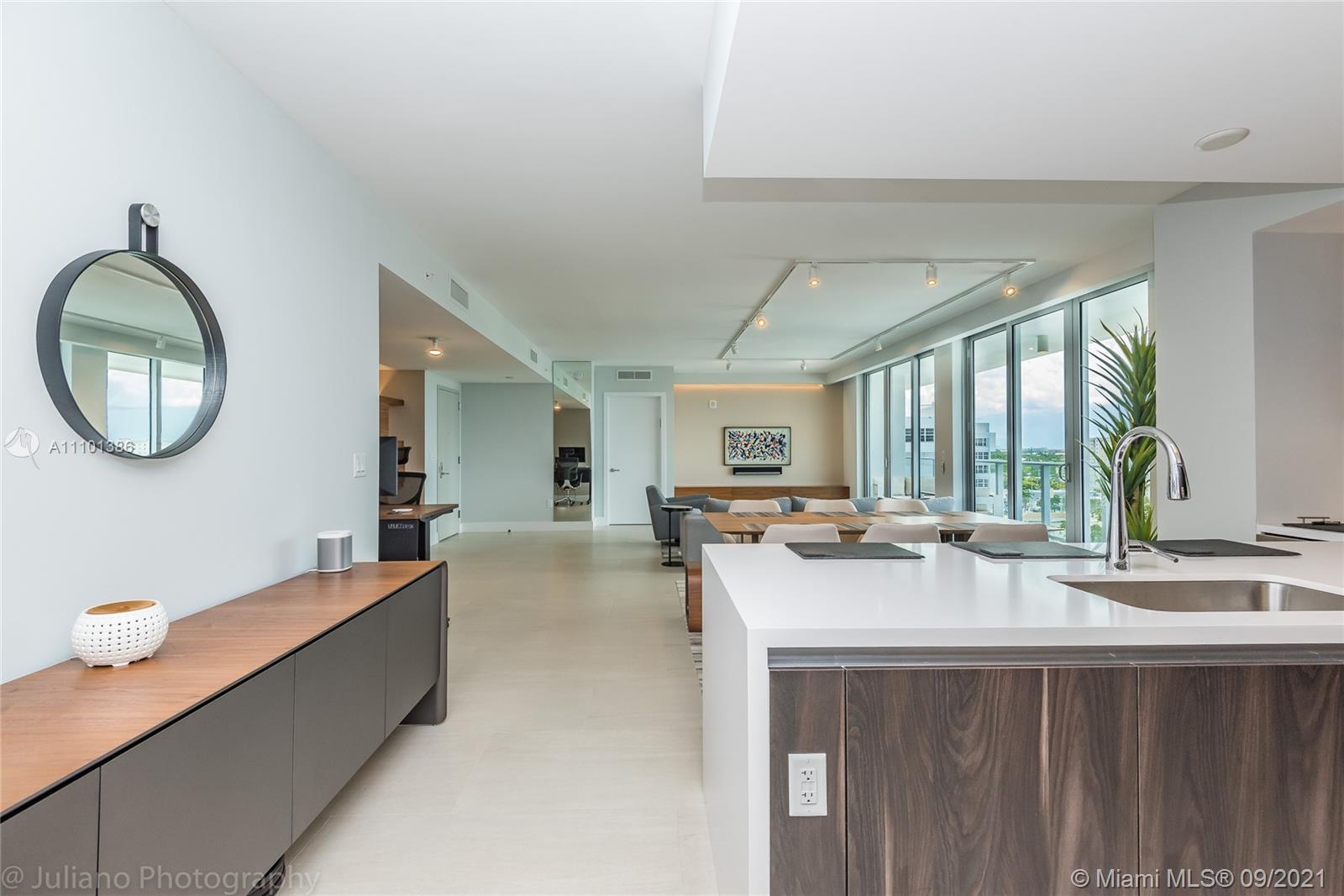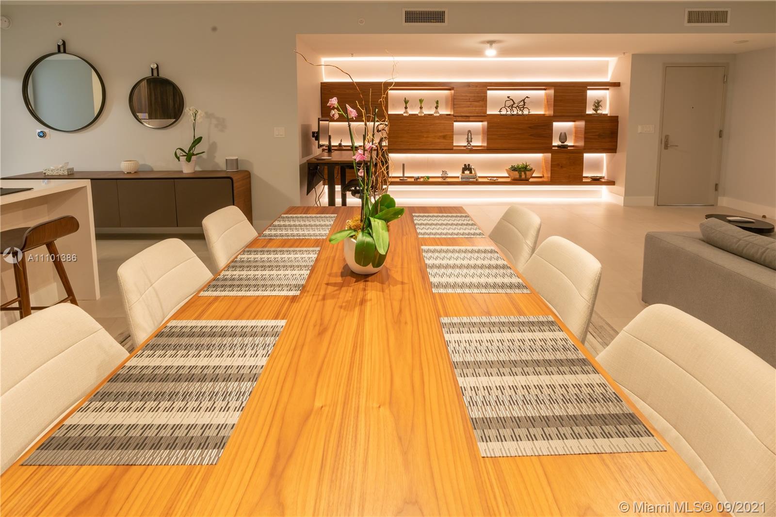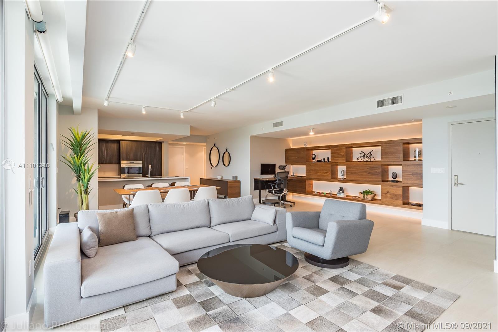 Designer ultra high end 2/2.5 + office area. Custom furniture & builtins in each room. 24x48 tile, impact windows, high ceilings & huge 70ft balcony with built in BBQ. Kitchen has Wolf wall ovens, gas range, quartz counters, Sub zero refrigerator, bar area & wine cooler. Custom wall treatments, walnut floating wall units, picture frame hidden TVS, SMART features- Phillips Hue smart lights turn on as enter room, Somos speaker system, Nest A/C, electric blinds & more. Decadent master suite has big walk in closet, master bath with 2 quartz vanities, large shower & separate tub. Other features: endless sunset views, laundry room w sink, 2 parking, kayak storage & storage unit. Resort style amenities include 7000sqft gym, spa, kitchen, pool, Jacuzzi, & docks on waterway. 2191sqft see floorplan.