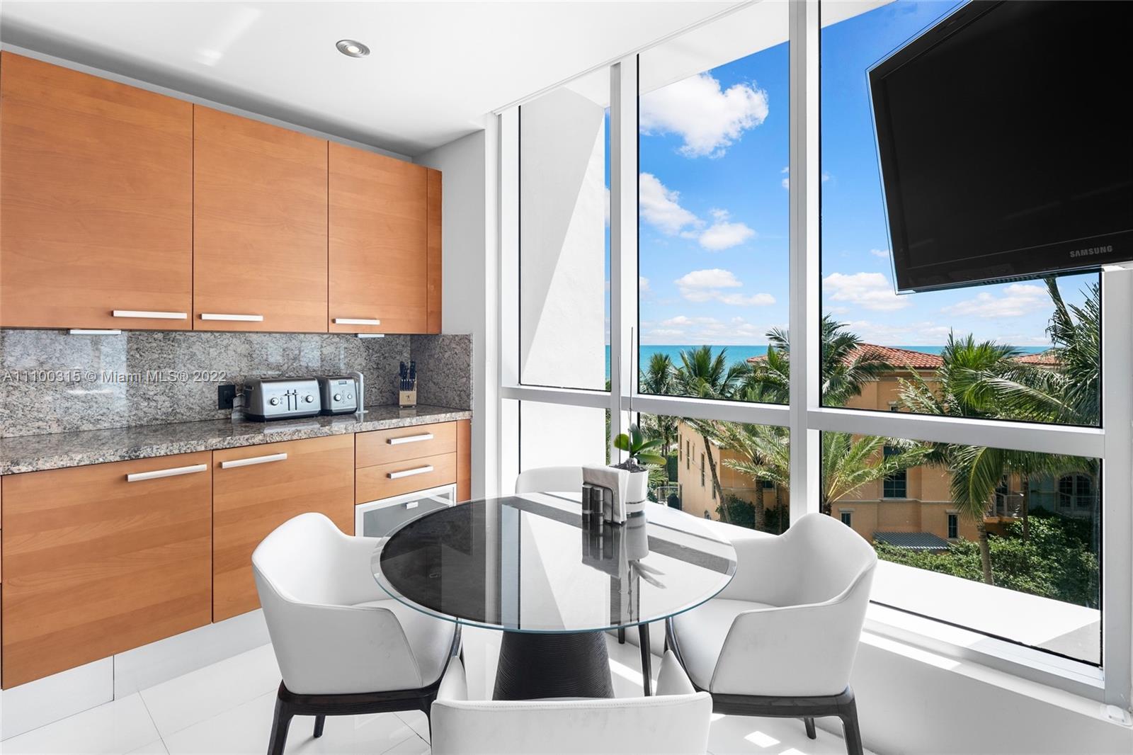 Live at the coveted Bath Club in this impeccably finished & fully furnished 4BD/3+1BA residence. Boasting mesmerizing direct ocean & treetop views, the residence beckons w/ curated interior design, 10-ft ceilings, state-of-the-art sound system by renowned audio engineer David Frangioni, 500+ SF of terraces, private elevator entry, custom finishes including black Jatoba-Brazilian cherry wood flooring & marble & wood details on the walls. Gourmet kitchen features state-of-the-art Sub-Zero & Miele appliances. Principal bedroom features 2 built-out walk-in closets & a spa bathroom. The Bath Club offers 5 star resort amenities - 540 ft of beachfront, pool w/ lap lanes & outdoor spa, cabanas, 2 clay tennis courts, complimentary valet, 24-hr security & fine in-house dining w/a private club.
