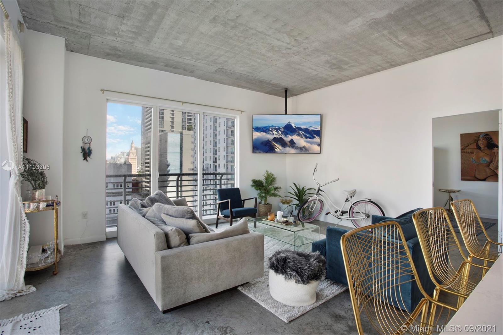 Large 2 bedrooms, 2 bathrooms unit at the Loft II Condo in Downtown Miami. High ceilings throughout the whole apartment. Wraparound balcony with floor to ceiling windows allowing a lot of natural light into the unit. Stainless steel appliances. Washer and dryer inside the premises. The building offers 2 swimming pools, one on the ground floor and one on the roof top. Best location in Downtown as The Loft II is very near all the main arteries to access Brickell, Miami Beach, and the Airport.