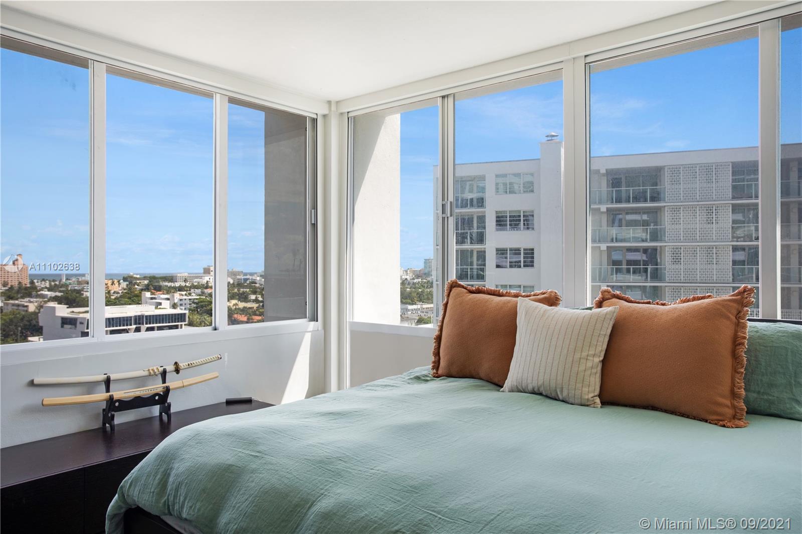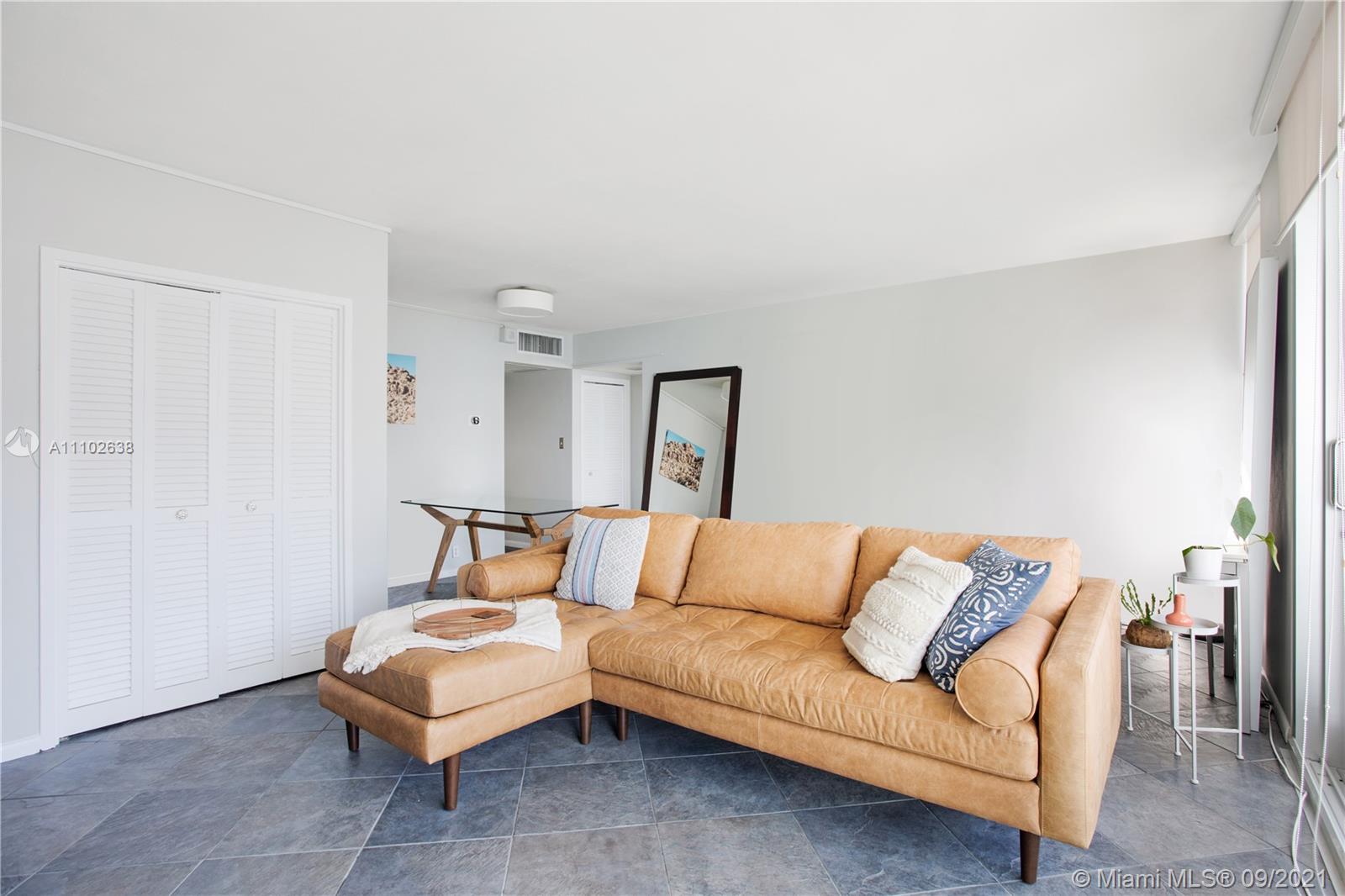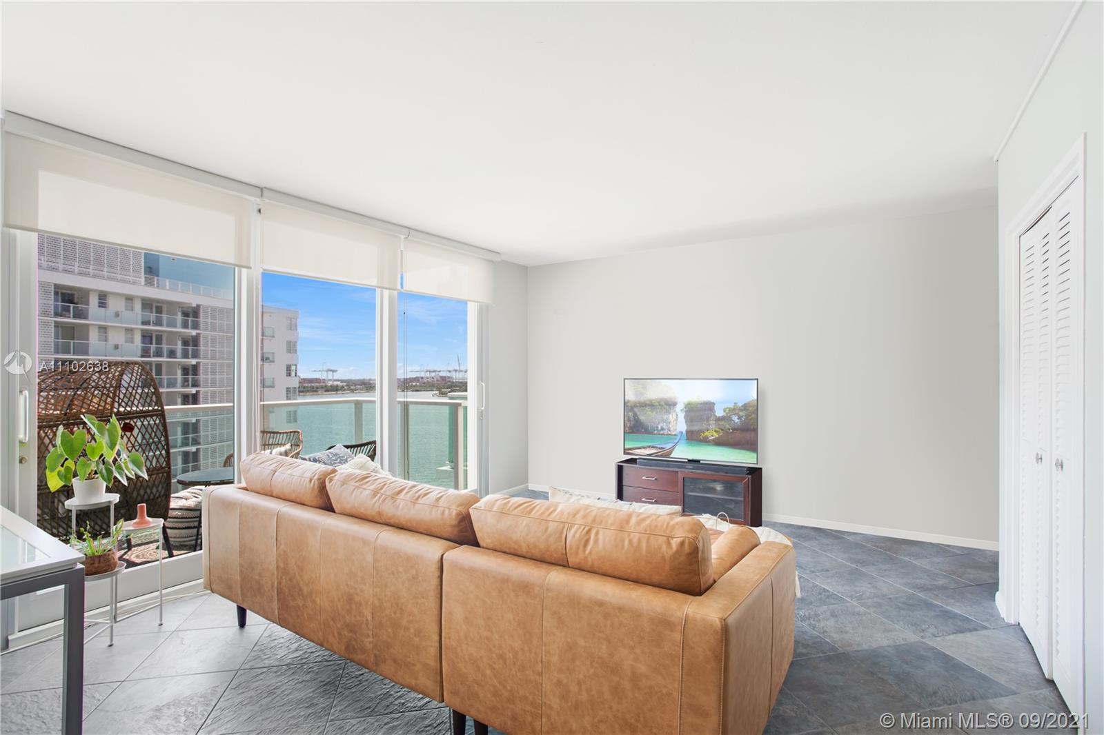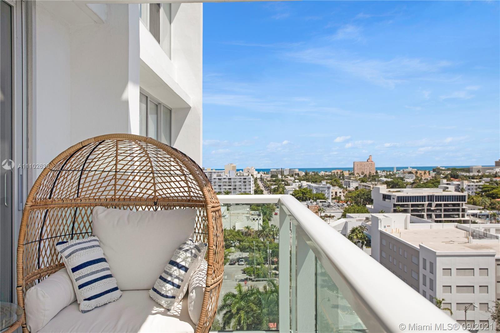 A bright 1 bedroom, 1.5 bathroom located on West Ave, with a view of the ocean, bay and skyline! Brand new electric curtains throughout this spacious corner unit, impact windows & doors, and beautiful slate flooring. Internet & cable included. Valet parking available for $65/month. The Mirador is a full service building with a large pool deck and a heated pool, jacuzzi, bbq area, sauna, convenience store, 24 hour security, spa, and hair salon!