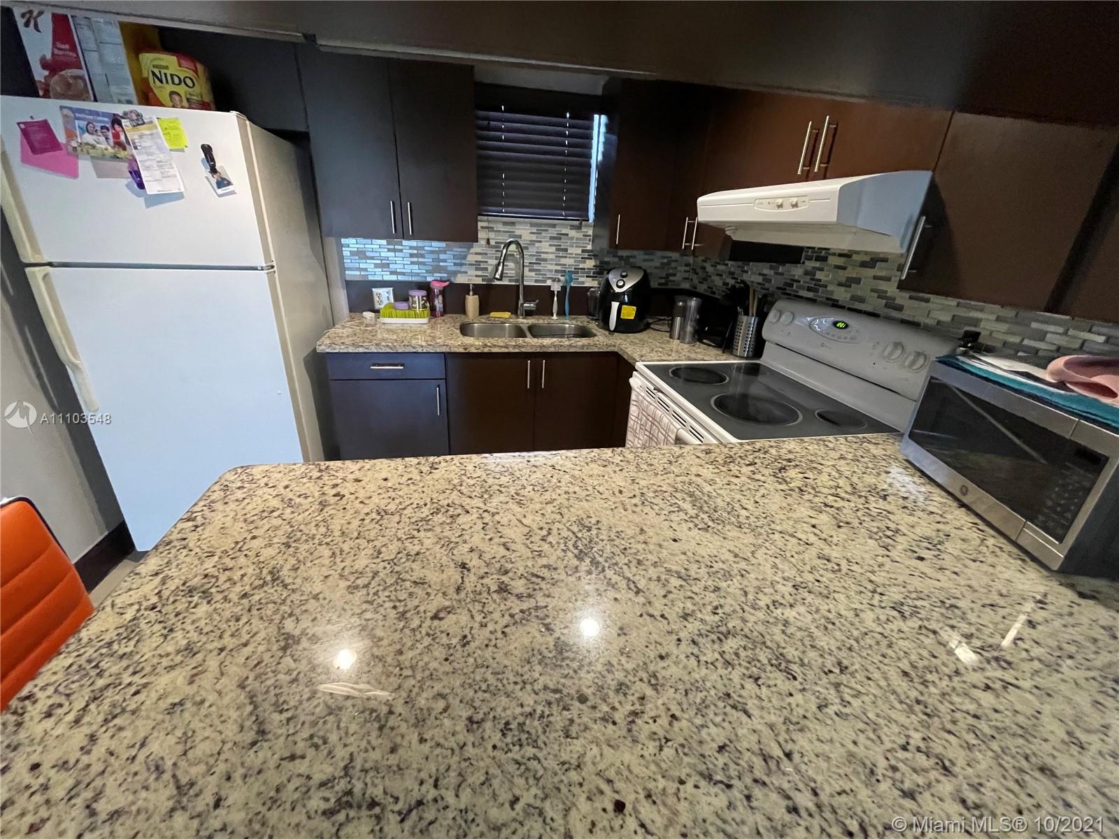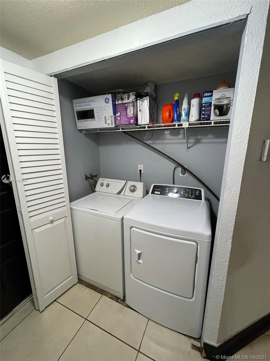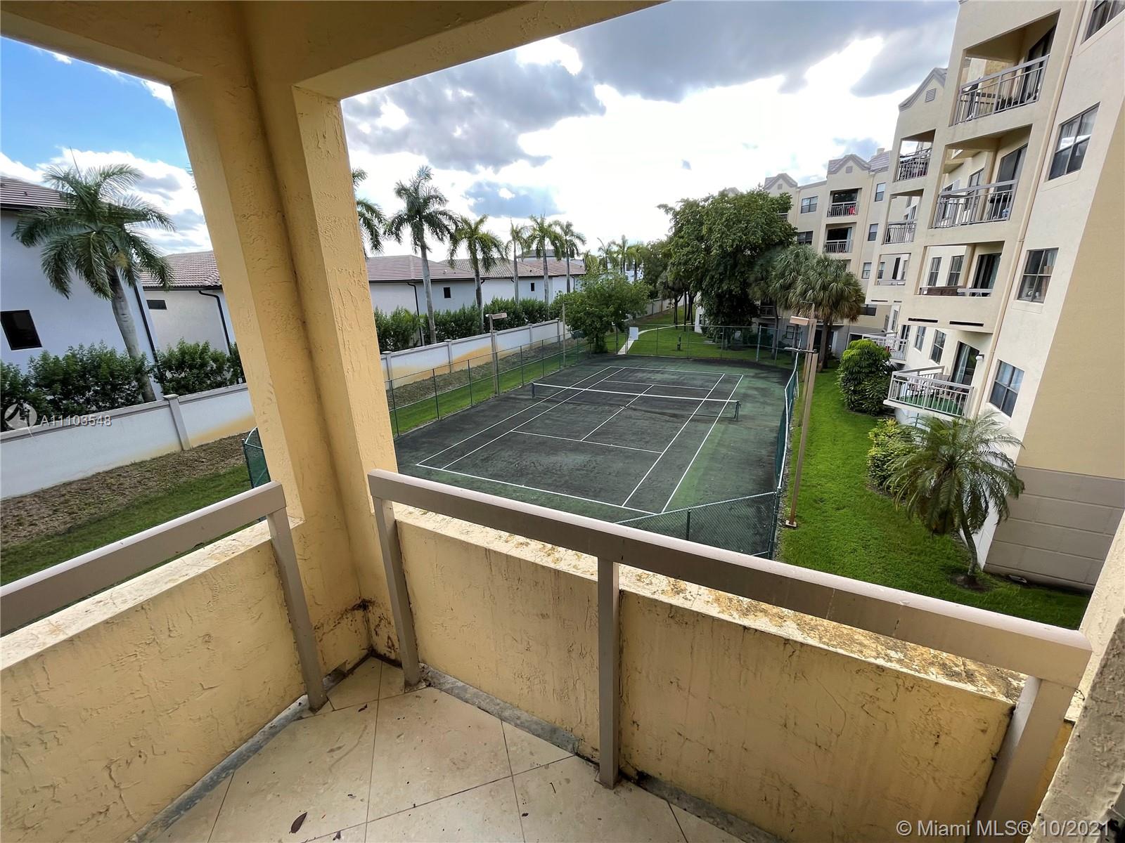 Great opportunity to own a condo in the beautiful city of Doral. Perfect 2 bed 2 bath condo with balcony overlooking the tennis courts. Features a master bedroom with a large walk-in closet and ensuite bath. Granite counters in kitchen with breakfast bar and plenty of storage cabinets. Tile floors throughout the unit. New AC less than 12 months from install. The washer and dryer conveniently located in the unit stays. Plenty of parking spaces are available to residents and guests. TV monitored guard gate screens each visitor at the entrance of the community. Spectacular amenities include pool, tennis courts, racquetball, exercise room, barbeque areas and more. Close to Downtown Doral nearby great restaurants and attractions in the Doral area. Just minutes from I-95 and major highways.
