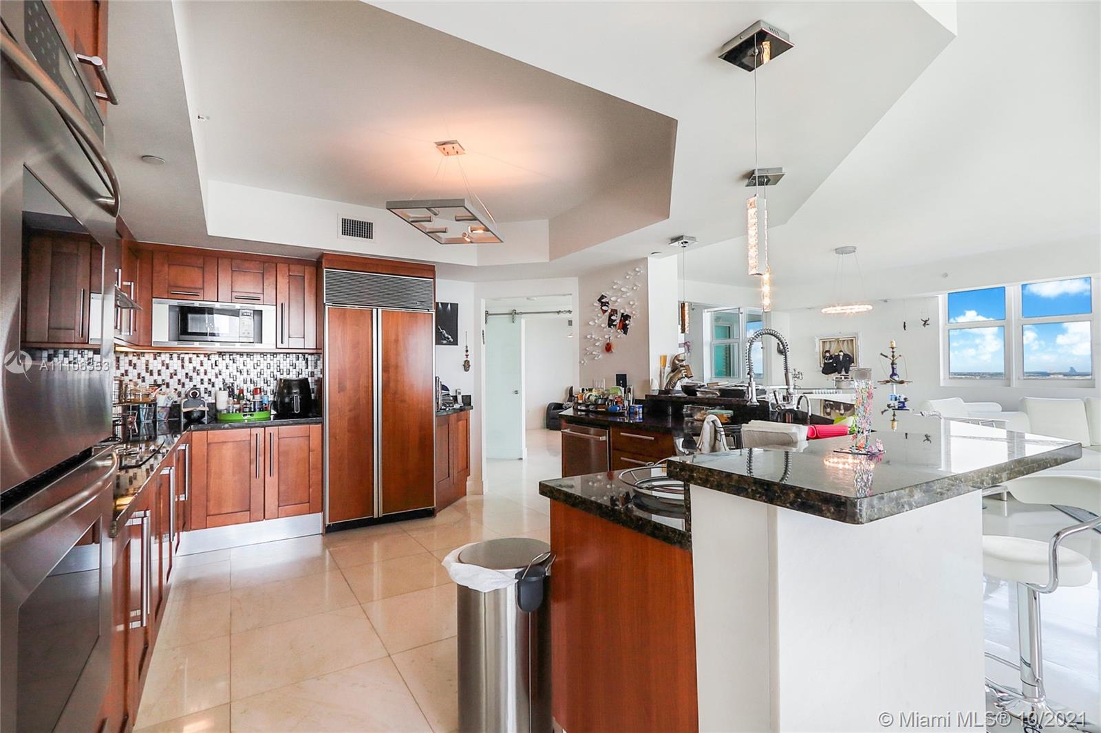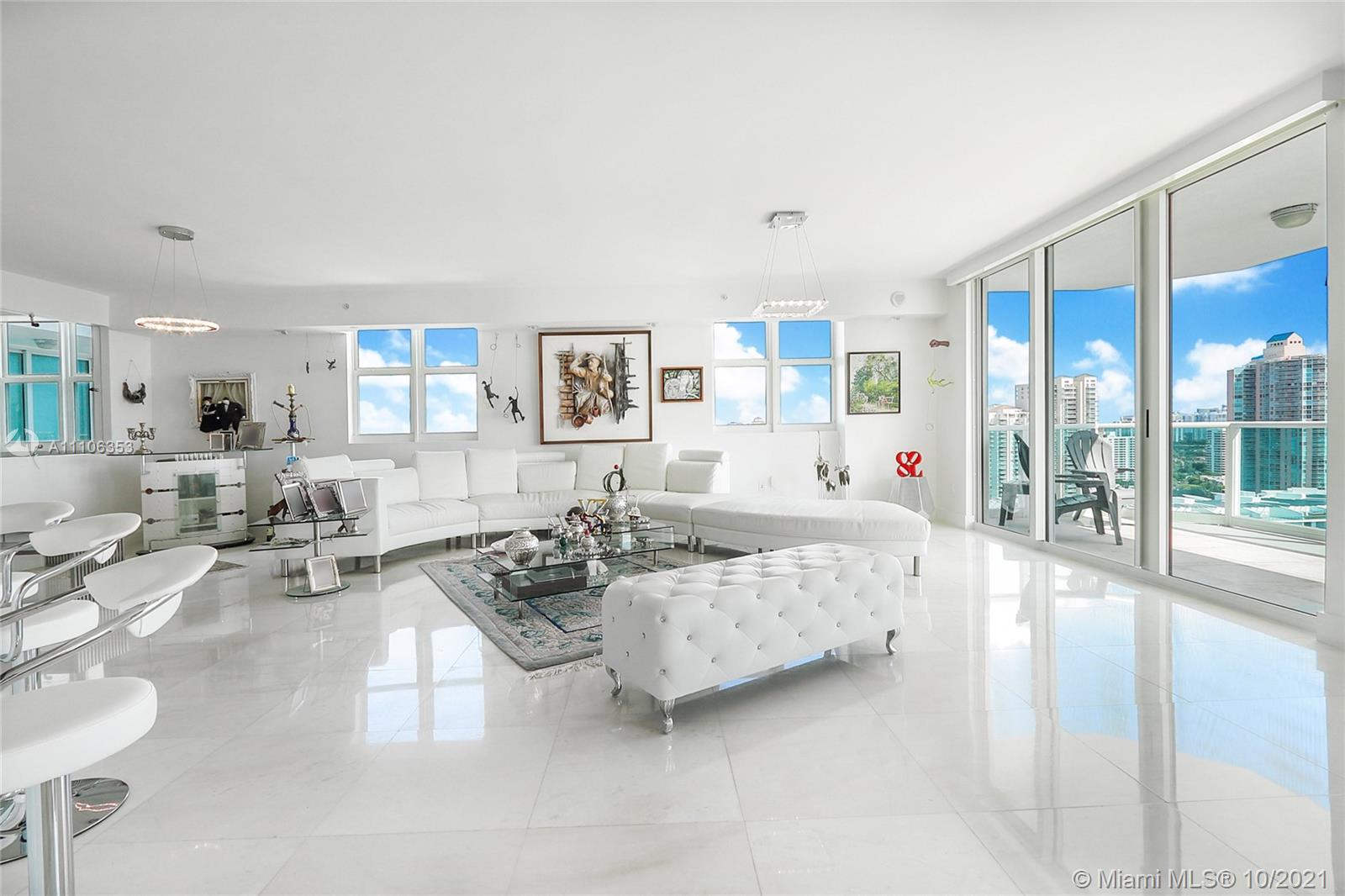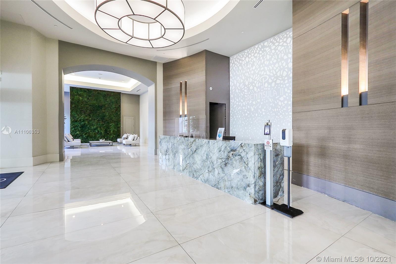 Most premium line in the building! Corner unit, 4 large bedrooms with 4.5 bathrooms plus a den. Flow through unit with open kitchen which leads to a separate formal dining area. Den can be used as an additional guest room, office or media room. Enjoy beautiful sunrises, ocean & bay views from your large balcony. Large master bedroom with private balcony and walk in closet. Separate laundry room. Peninsula is a full service luxury building with 24 hr security, lobby has been fully renovated, valet, 2 swimming pools with towel service, fitness center offering live aerobic classes, 3 tennis courts, game room featuring billiards, ping pong, dog walking area plus a private dog park. Excellent location, near Aventura mall, great school districts, near shopping & restaurants.
