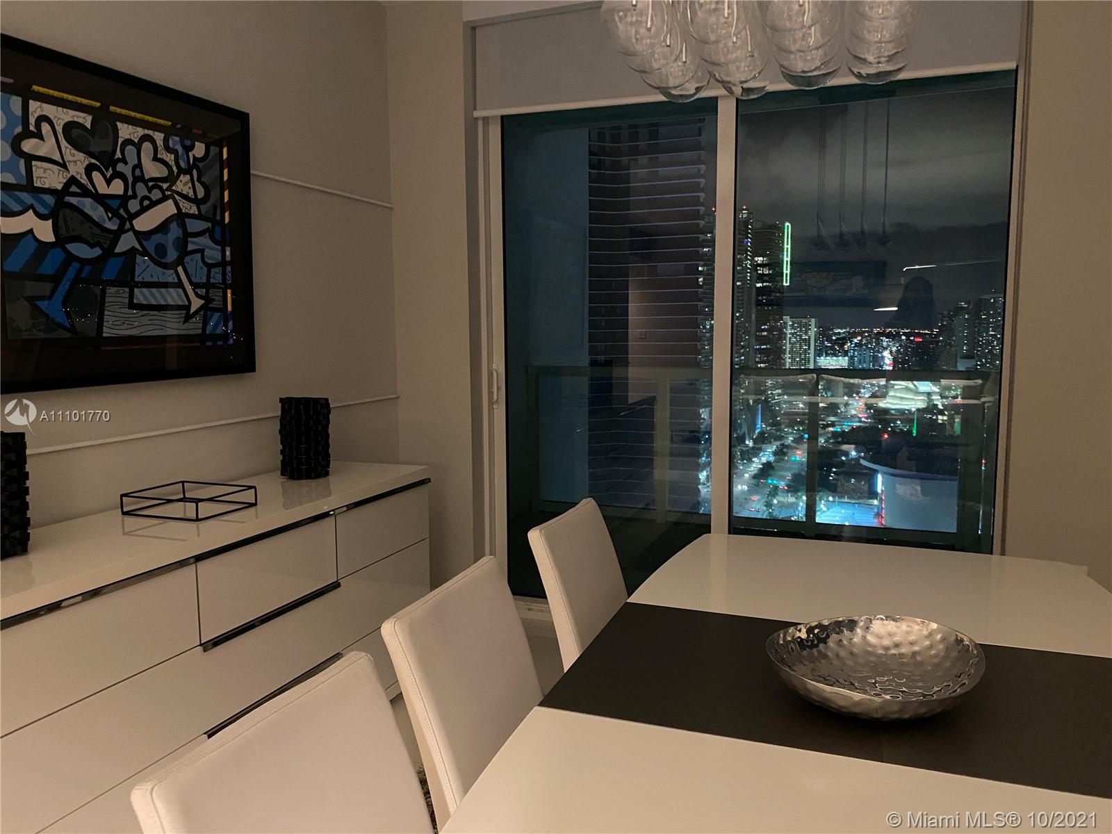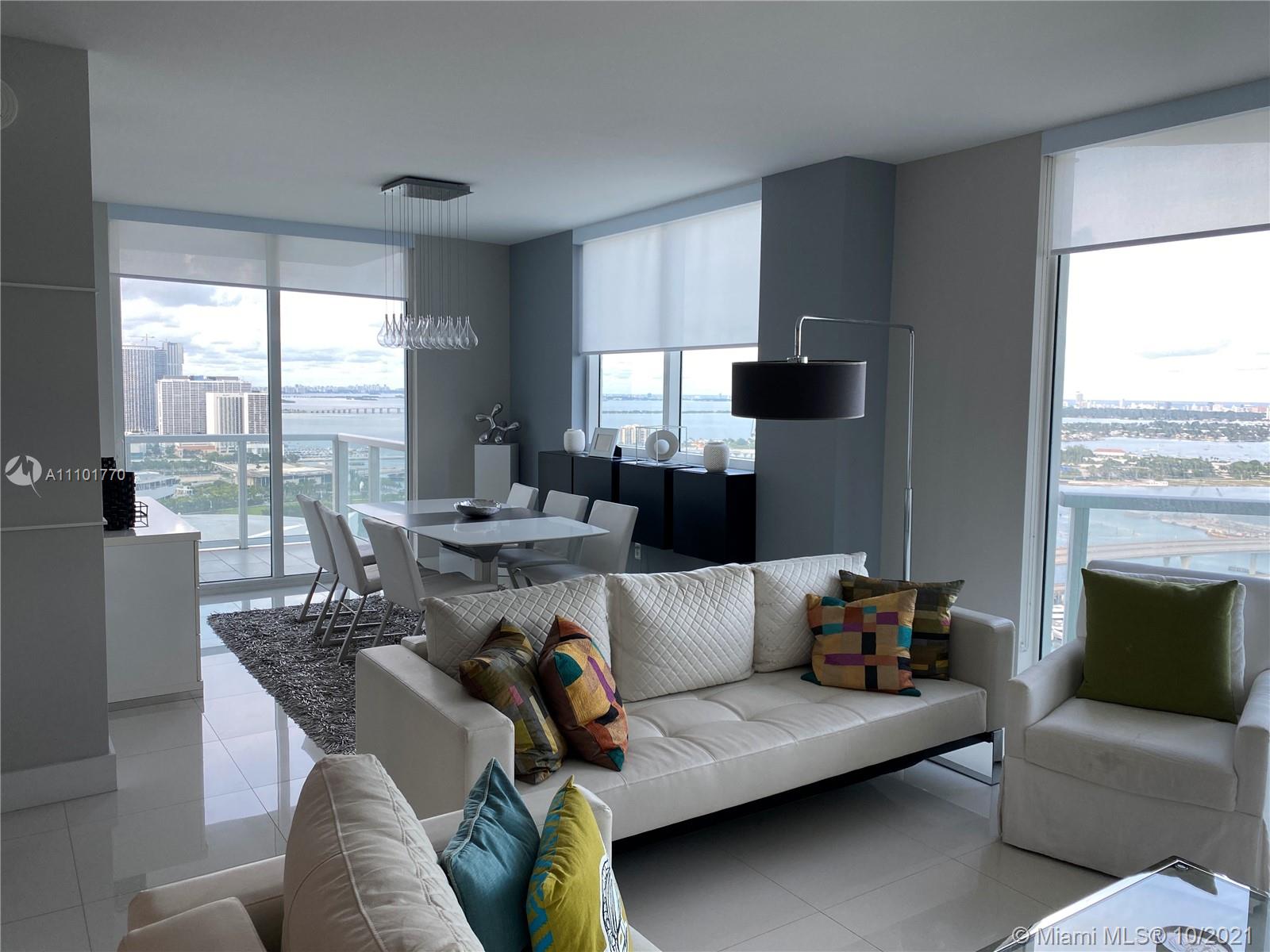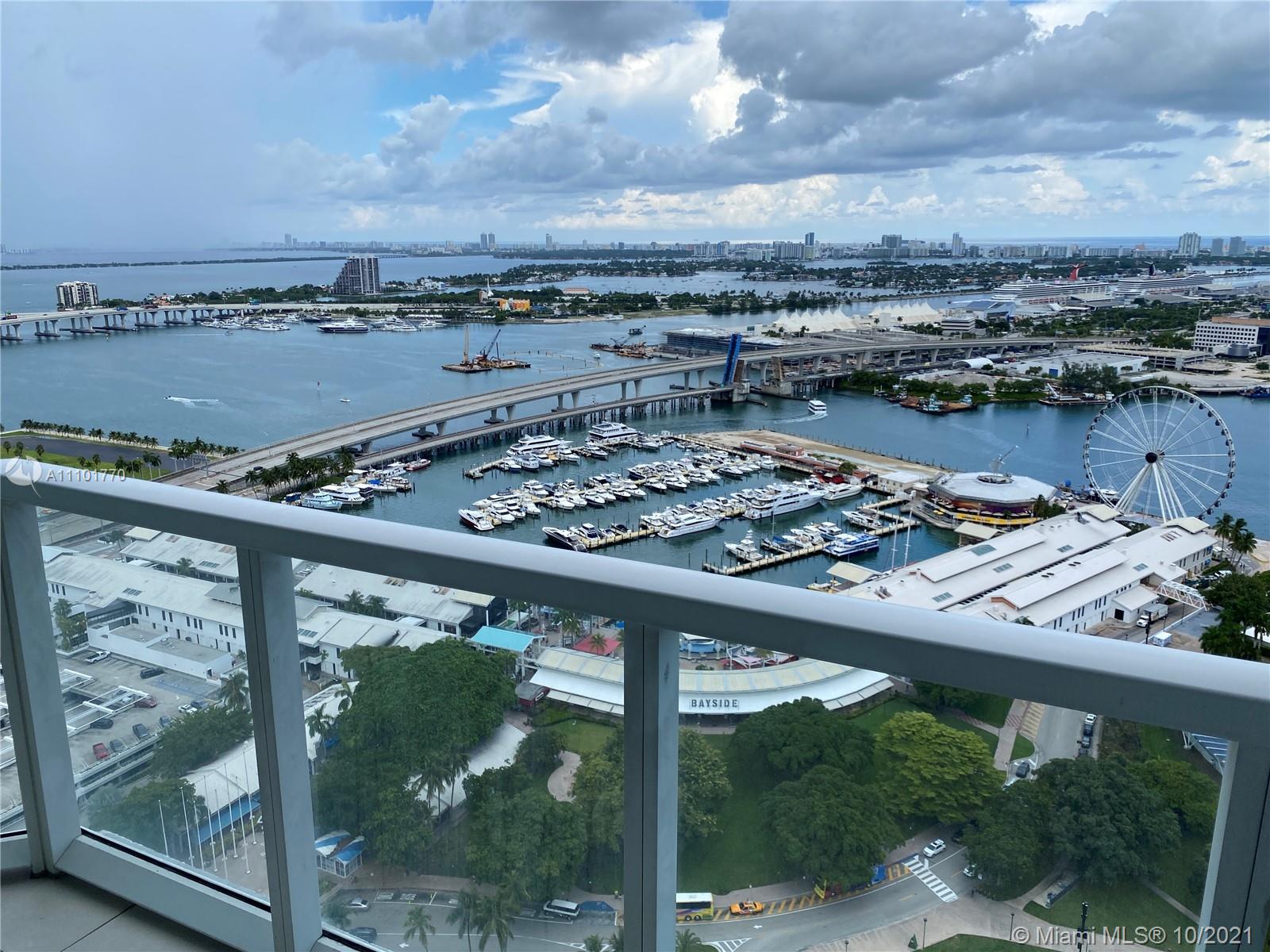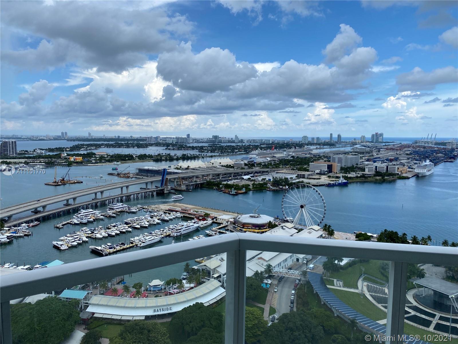 Fantastic DIRECT WATER VIEW from this magnificent condo in luxurious bldg in the heart of downtown Miami. Fall in love with the CITY SKYLINE & BISCAYNE BAY VIEWS from this 35th floor unit at the Vizcayne North Tower. This 2 bed/2 bath condo comes totally furnished by TUI, offers lots of closet space plus additional storage room and features 2 balconies & W/D in unit. Movie Theatre, 4 pools, full service health SPA & gym, billiard & party room with a kitchen for catering are just some of the amenities. Just steps away from fine dinning, shops & entertaining. Only 15 min away from the Miami Airport. Priced to sell fast