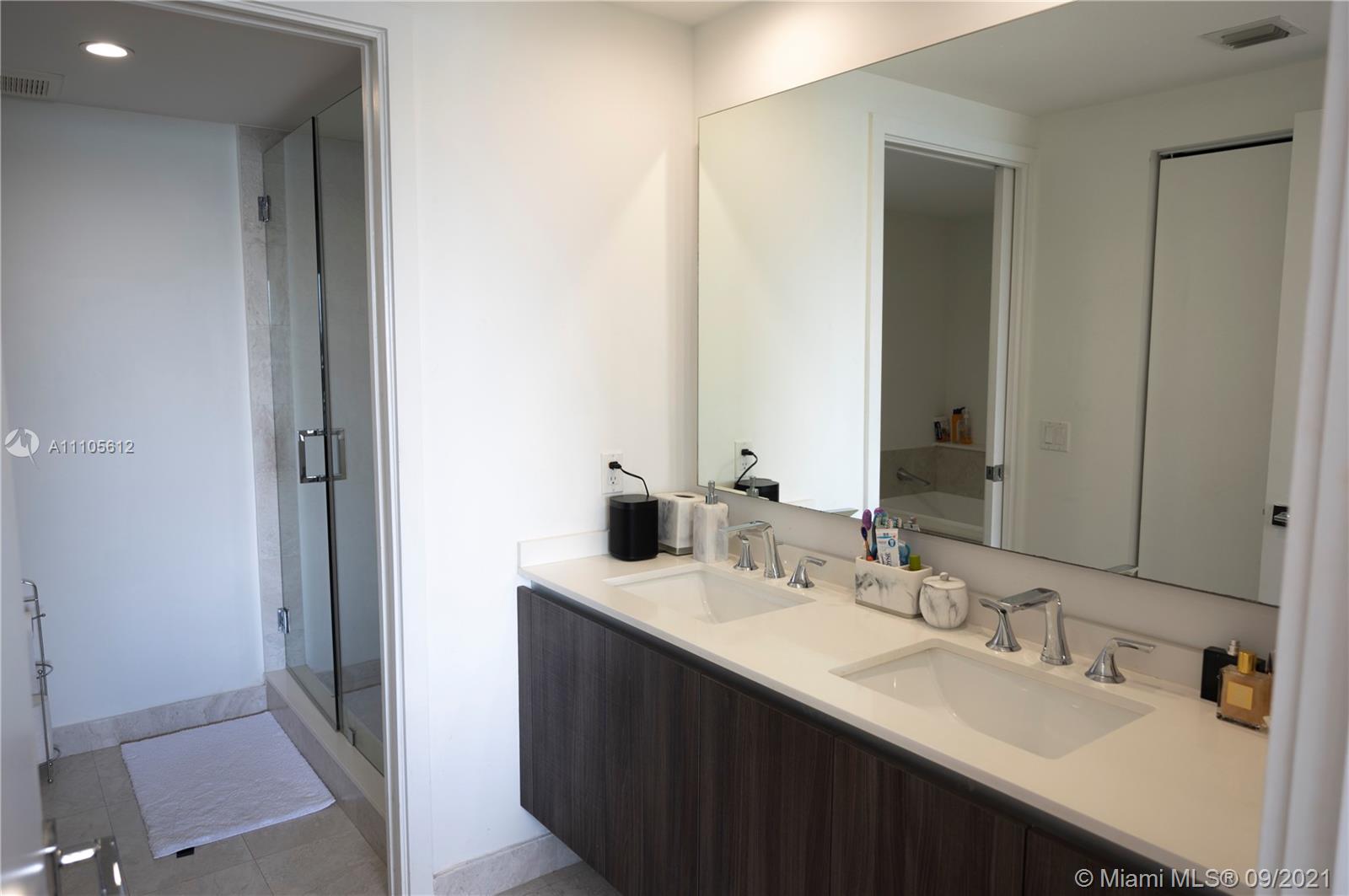 Bay Views from every point of this cozy Apartment, unit featuring large balcony, porcelain floors throughout the whole apartment, Italians cabinets and quartz tops in kitchen and bathrooms, assigned parking space is just a few steps from the front door. Aria on the Bay Condominiums offers the best residential lifestyle in Edge Water, centrally located and LOADED with all the amenities of any 5 stars resort. Walk to Margaret Pace park and marina, public transportation, banks, restaurants... UNIT IS RENTED, CASH ONLY, PROOF OF FUNDS