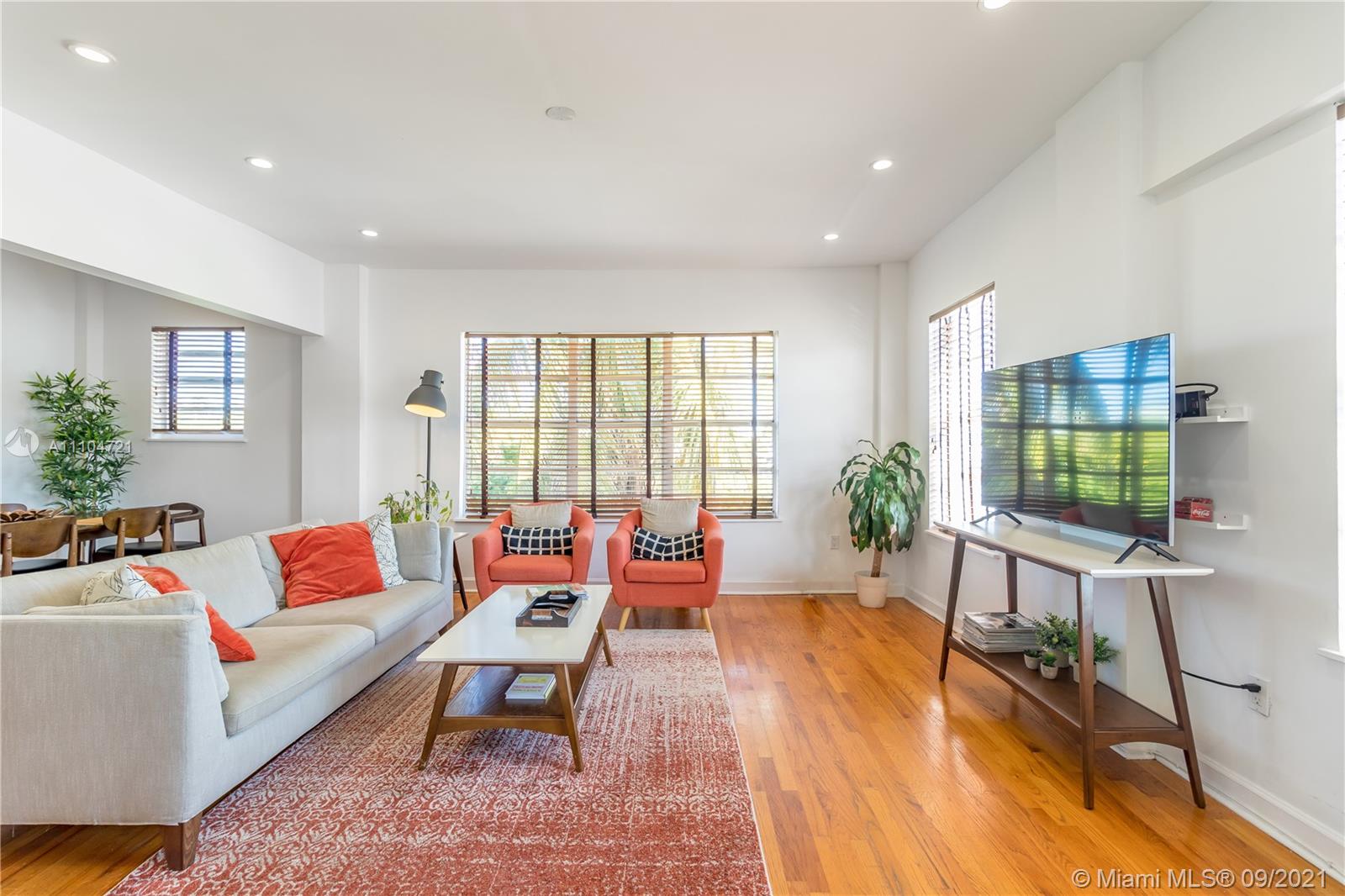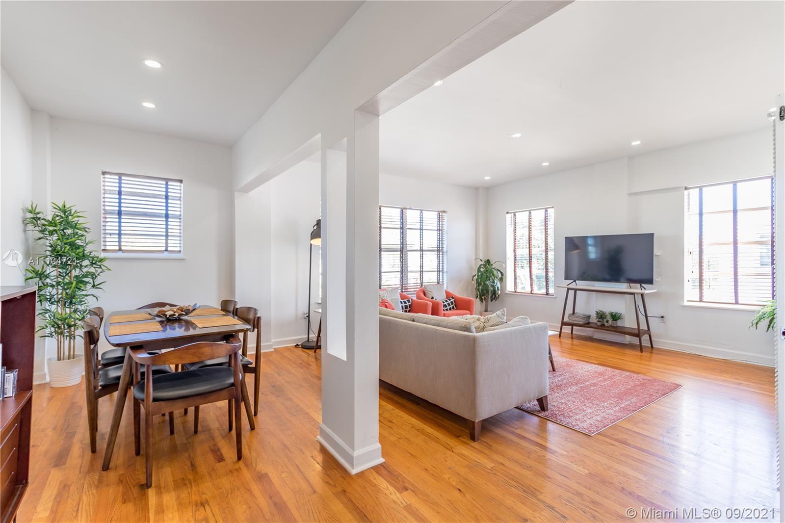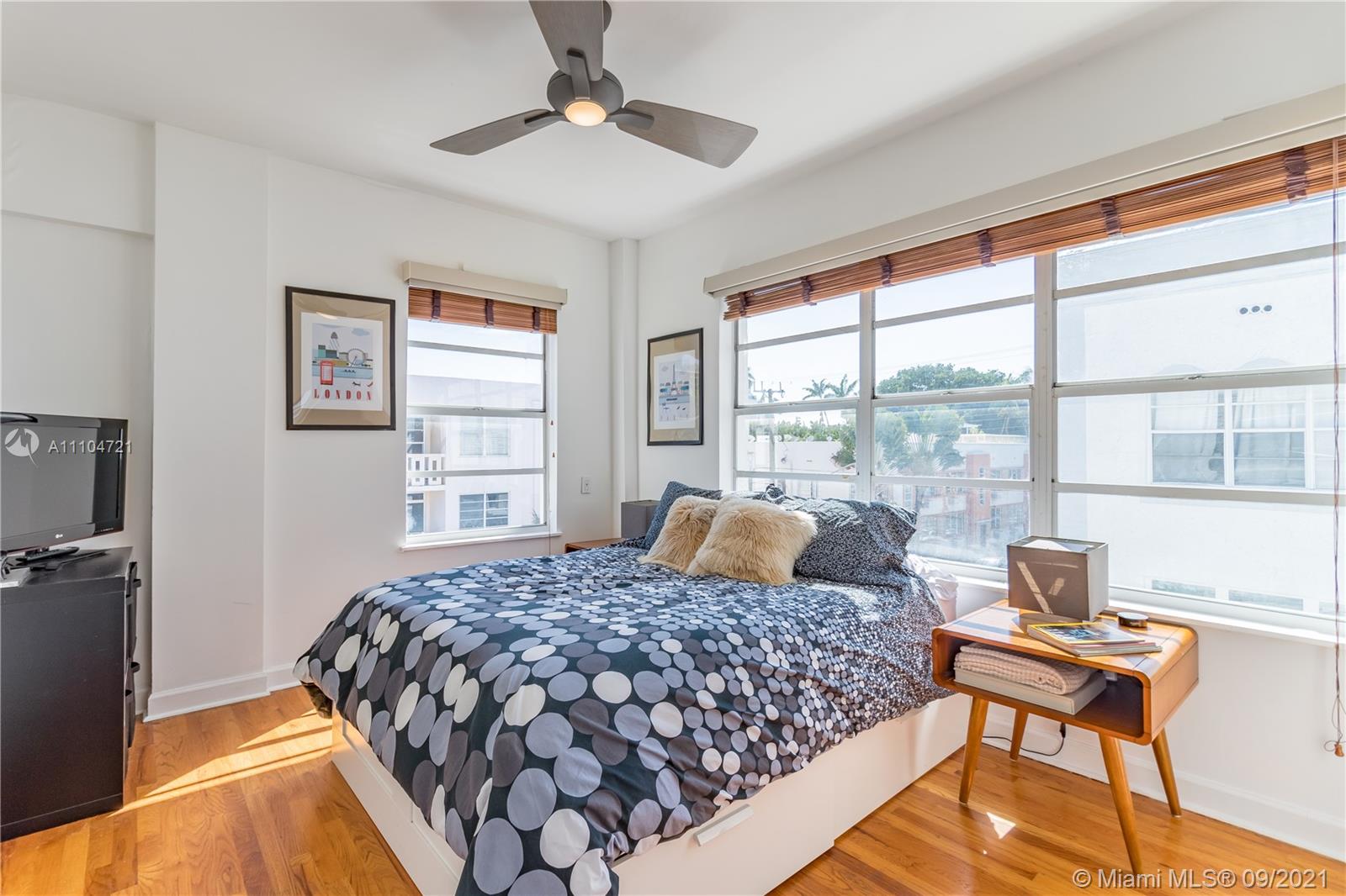 Three exposures and walls of big windows fill this open lofty beach pad with tons of light! Top floor 2 bedroom, 1.5 bath residence with a modern/vintage feel in this Mediterranean masterpiece boasts original hardwood flooring, sleek grey cabinets and grey stone countertop with stainless steel appliances. This spacious residence faces east, south and west and shares almost no walls with another unit. The historic Fenimore Condo is located right in the heart of South Beach adjacent to the park, walking distance to the ocean, shops, Lincoln Rd, groceries, restaurants and more! Pets welcome!
