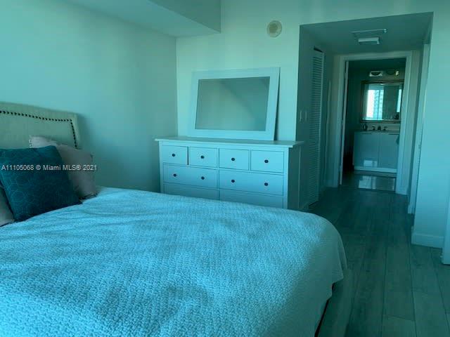 ** New AC, Paint, Flooring , Washer/Dryer installed 11/2021. 1800 Club boasts stunning amenities all bundled in one maintenance fee. Located across from Margaret Pace Park, tennis and volley ball + more, or just relax by the water. This 1 bedroom, 1 bath overlooking the sparkling pool has been meticulously cared for; modern kitchen w/stainless steel appliances, granite counter tops, kitchen w/pass thru to spacious living room. Huge 166 SF tiled balcony with floor to ceiling windows from living room and bedroom. Cable, internet, water, 1 parking space included in HOA. 5 min to South Beach, Midtown, Wynwood, Downtown.