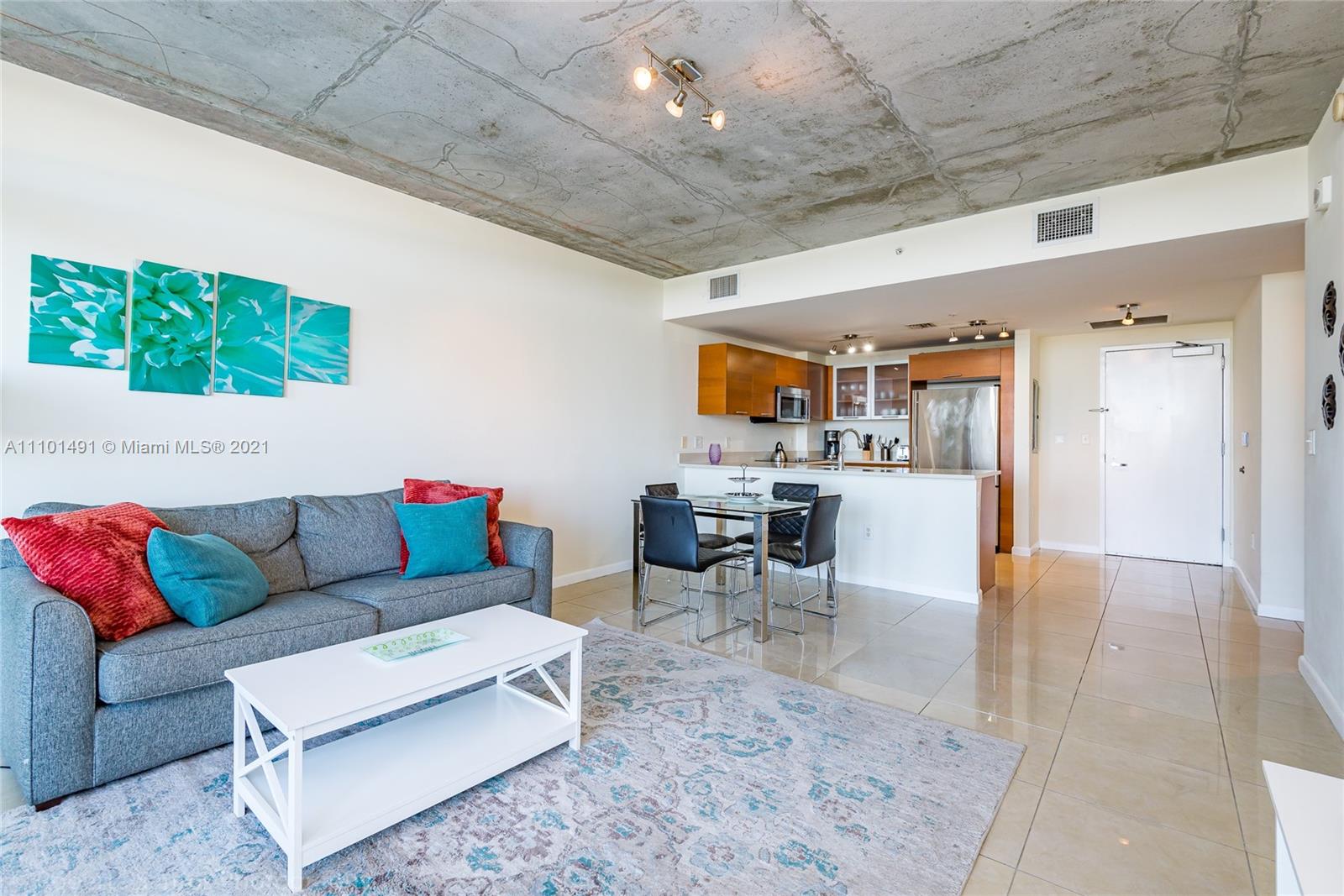 Excellent 1 bedroom/1 bathroom apartment fully furnished. Porcelain tile throughout, kitchen with Italian cabinetry and quartz counter top, washer & dryer. Midblock amenities are on the 5th floor, features swimming pool, outdoor barbecue, fitness center. Amazing location! located in the heart of Midtown Miami and walking distance to shopping, restaurants and park. Low maintenance fee, short term lease allowed.