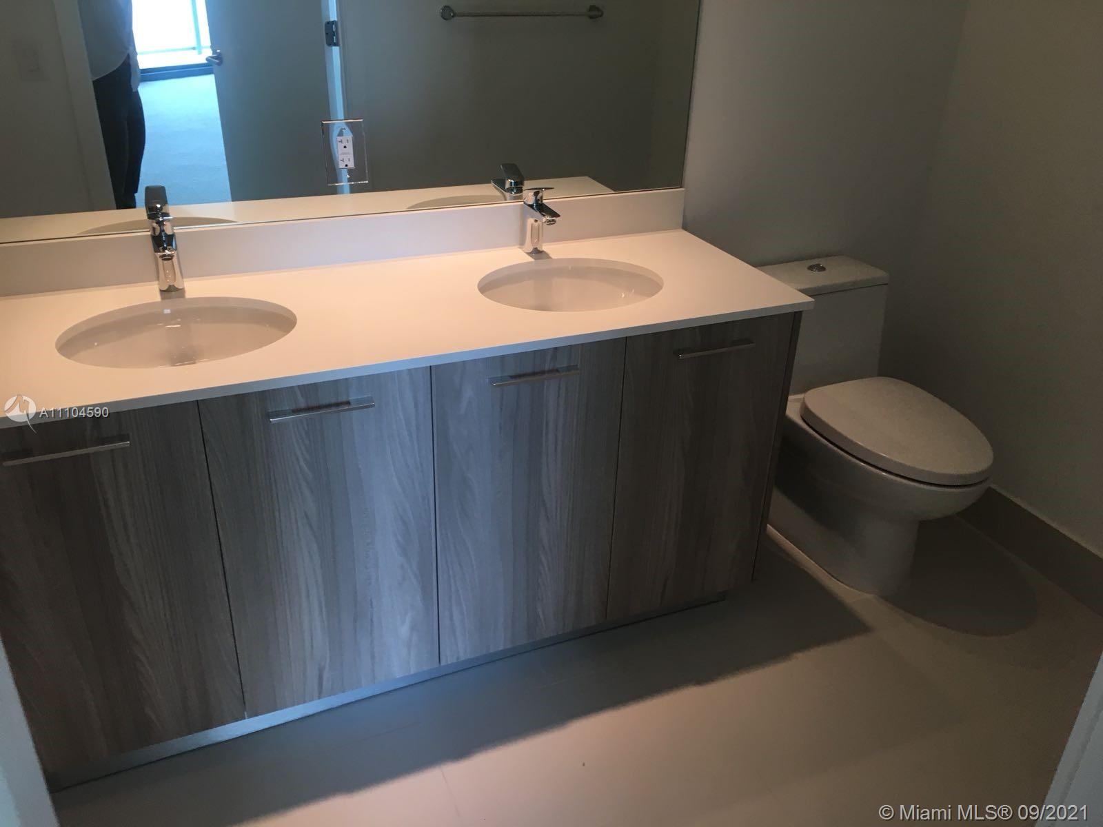 Good investor opportunity. Beautiful water views of the ocean bay and city Downtown/Brickell. New building, this unit is 1 bed 1.5 bath, featuring BOSCH appliances, washer/dryer inside, Black out blinds. Condo has incredible designer finishes by Karim Rashid including. Many amenities: tennis court, pool, BBQ grills, lounge beds, spa, sauna, treatment rooms, fitness center, movie room, billiards, kids room, club room and STUNNING 46th floor pool deck! This can be great for investor or first time home buyer to live in a great location and community. Unit rented for $2000 until March 14, 2022. See broker remarks for other comments.