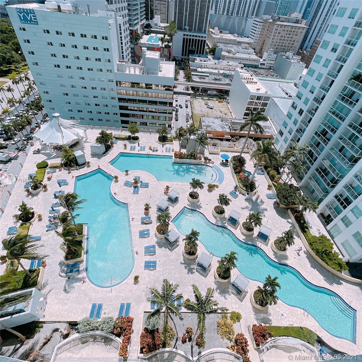 This condo offers spectacular views of open bay, port of Miami, Key Biscayne, Bayfront park and Brickell. This is a spacious 1 bedroom property with extra large balcony, overlooking 3 out of 4 heated pools of this luxury residence in downtown Miami. Come and enjoy state of the art spa, fitness center, 2 business centers, 3 conference rooms, 3 level clubhouse with movie theater, and only minutes away from the airport. It comes with basic cable, 1 assigned parking and a storage space. Great for investors as it can be rented for a minimum of 30 days (12 times per year).