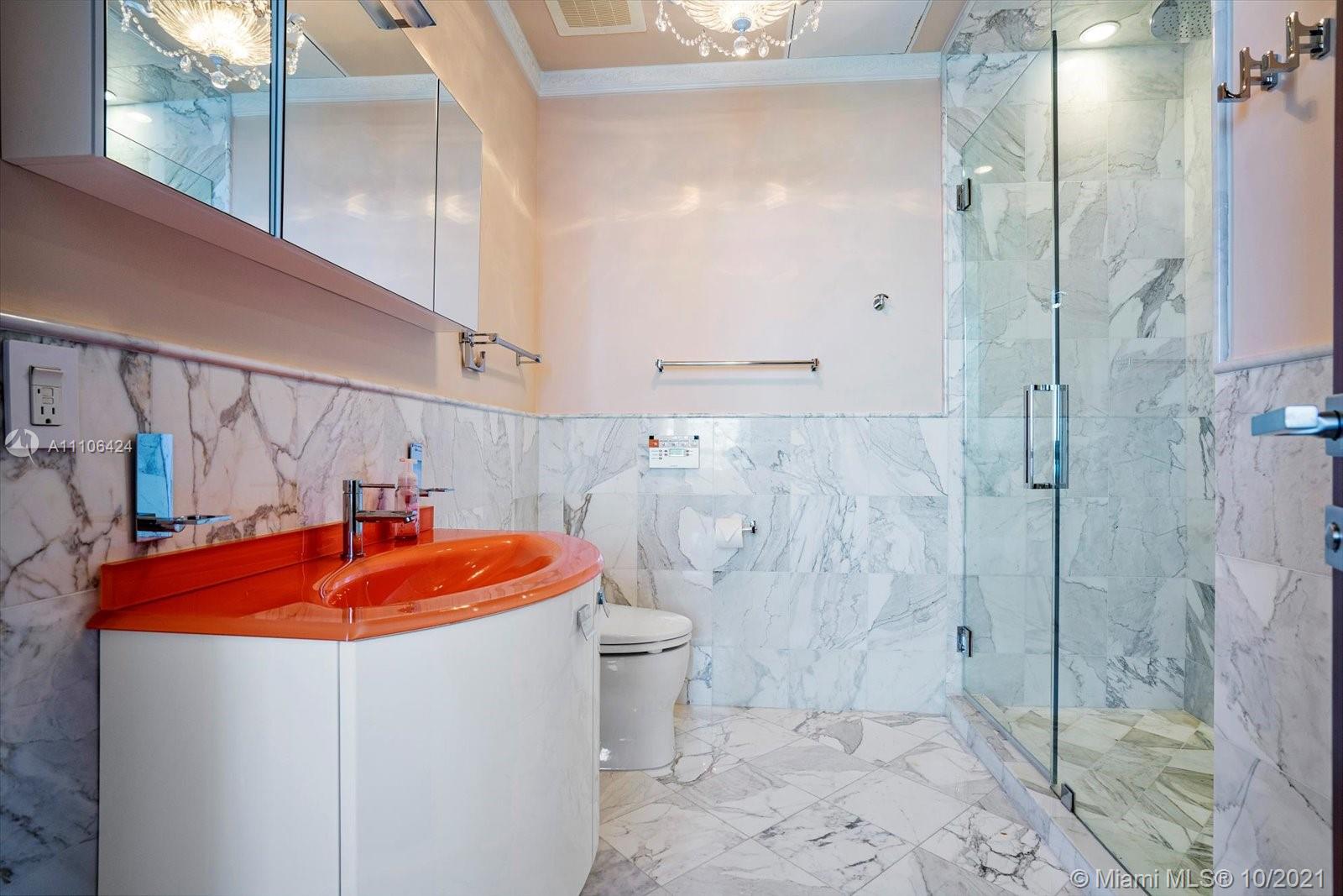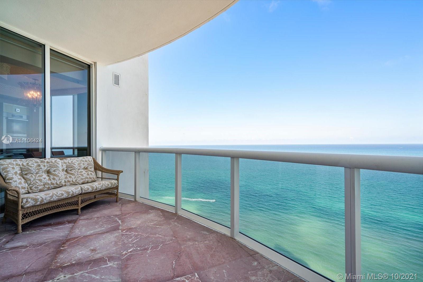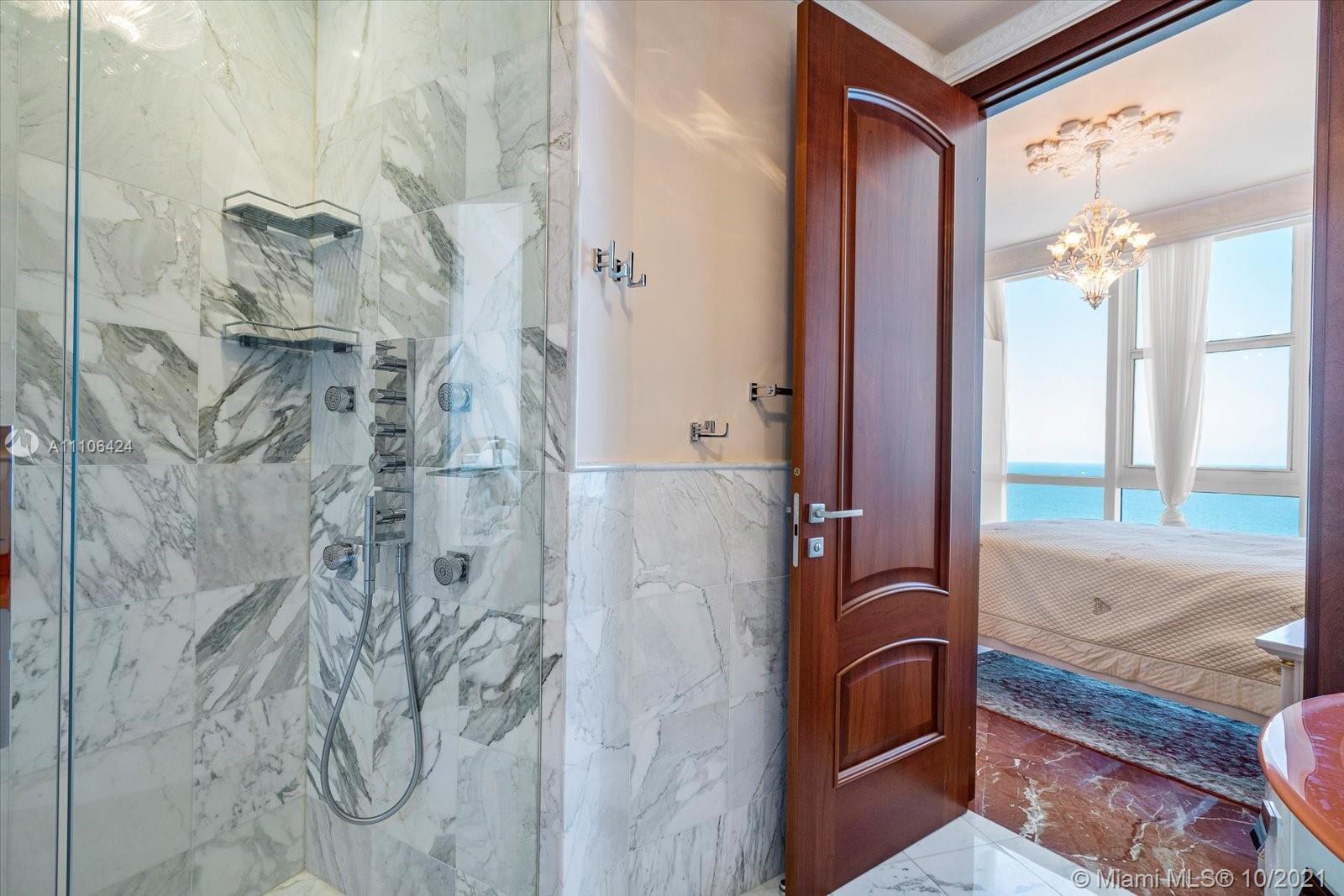 This is the largest two bedroom floor plan in Trump Royale, and boasts endless oceanfront views from all of the floor to ceiling windows in this corner east facing unit. Ceilings are true 10 ft in this unit! Enjoy a large living area, eat in kitchen, and an oversized master bedroom and master closet. No expense was sparred! Owner gutted the entire unit , marble and onyx floors, custom Italian doors, custom bathrooms and custom Italian kitchen featuring two subzero refrigerators, all upgraded Miele appliances with two stoves and two sinks. Miele washer and dryer. Custom closets, crown moldings , ceiling designs, custom lighting, chandeliers, all Italian furniture and so much more. Fully equipped, just bring your toothbrush!