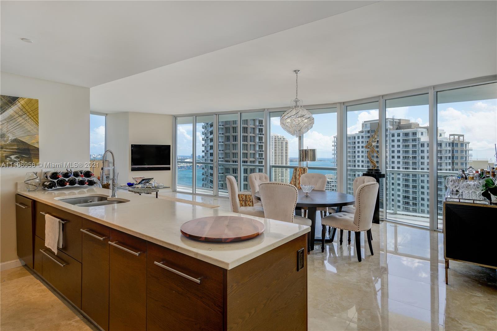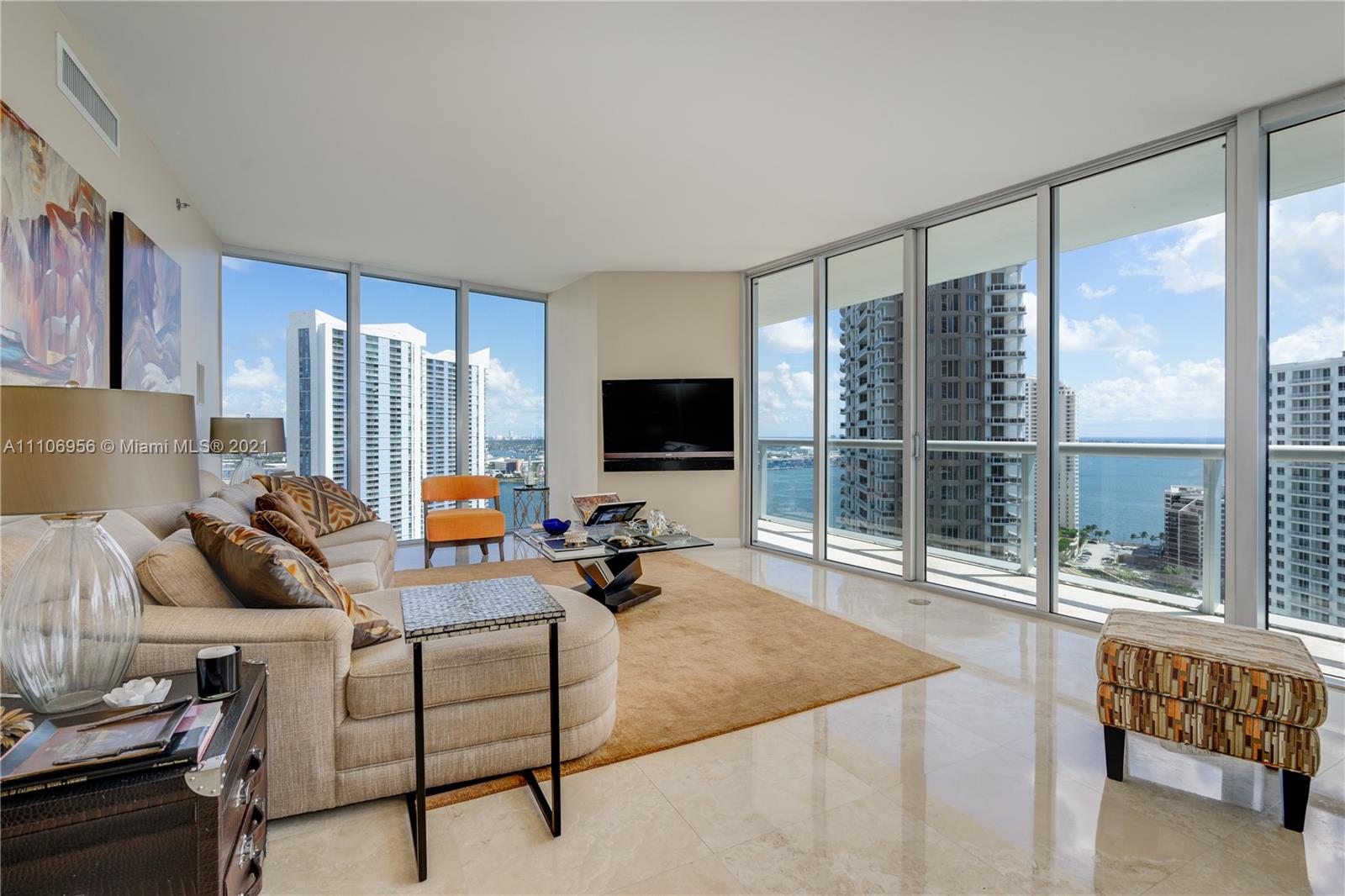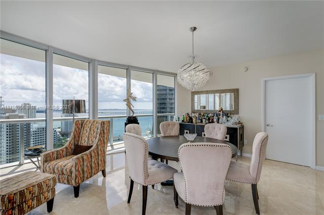One of the best layouts in the Brickell area! 3 BD/2.5BA corner unit with gorgeous water views from all rooms. Gourmet kitchen with stainless steel appliances, assigned parking space, pet friendly & more. Hip and luxurious building by Philippe Stark with one of a kind common area and amenities. High-end restaurants on premises (Cipriani and Cantina La Veinte). Walkable neighborhood, 5 min walk to Brickell City Center.