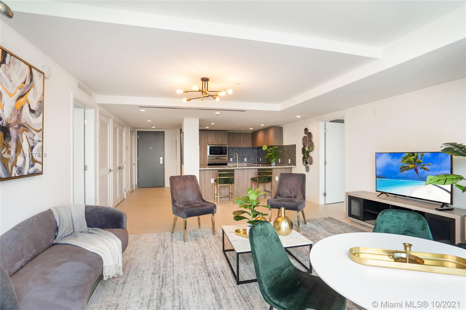 Best value in the area on the new development! Boutique building living in the heart of Bay Harbor island. The large features 1470 sqft of living, two (2) large bedrooms with walking closets. Spacious bathrooms (2/1) and an oversized living area filled with natural light. Top of the line appliances W/D in unit. Building include a Rooftop pool, small gym and two assigned parking spots. Best price/sqft in the area. Can't beat the location. Safest zip code in FL and top ten in the Country. A+ public school a mile away.