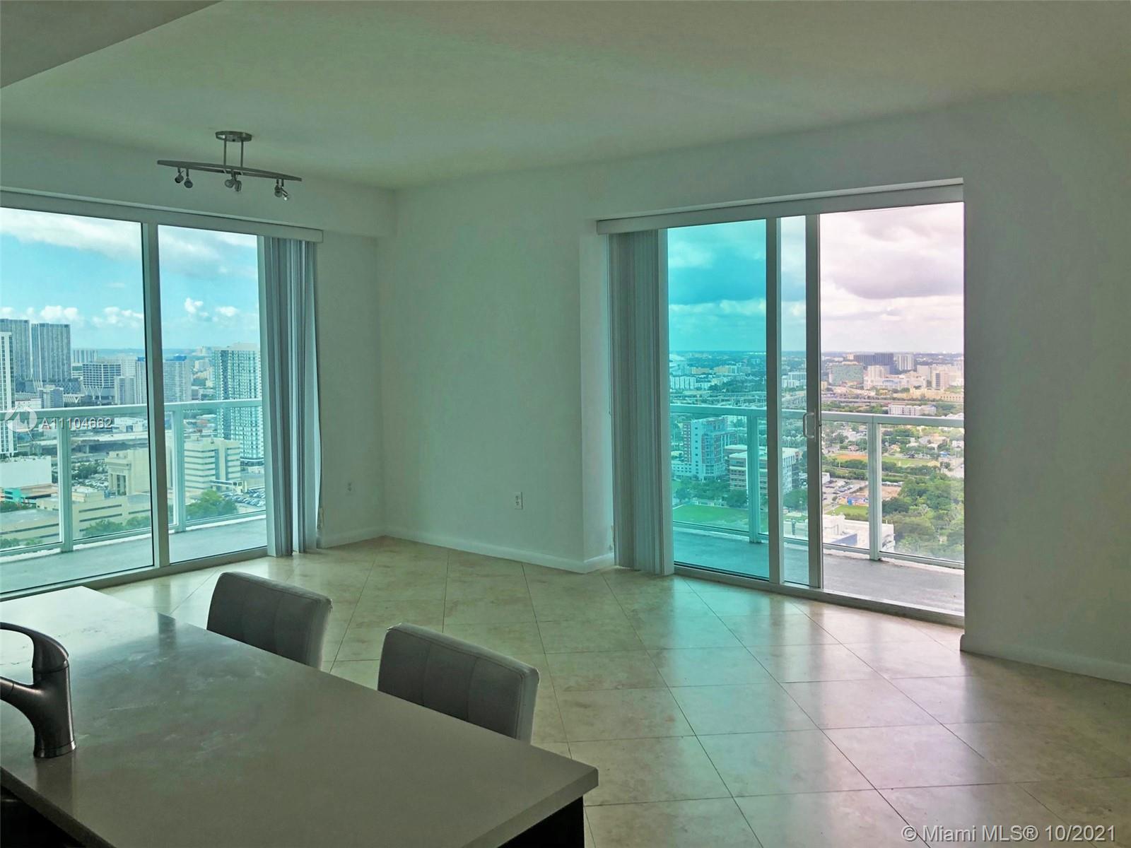 Spacious 37th floor corner unit with extensive views to the City of Miami. 2 bdrm 2 bath, ceramic flooring, open kitchen with cooking island, stainless steel appliances, walnut finish cabinetry. Quantum is located at Edgewater with fine restaurant, near Wynwood, Midtown, Design District, Downtown Miami & Beaches. Amenities include; 2 beautiful pools, sauna, theatre room, large fitness gym, business center, 24 hour concierge, party room and more. Dog friendly building and dog Park across the street. Showings allowed Mon.-Fri. from 9 am to 5 pm and Sat. from 9 am to 2 pm. Washer/Dryer closet has extra tiles, etc. Min. lease period in bldg. is 6 mths. Please read broker remarks