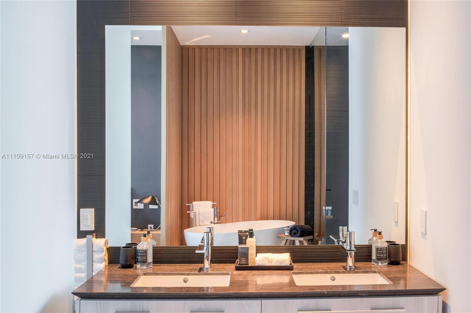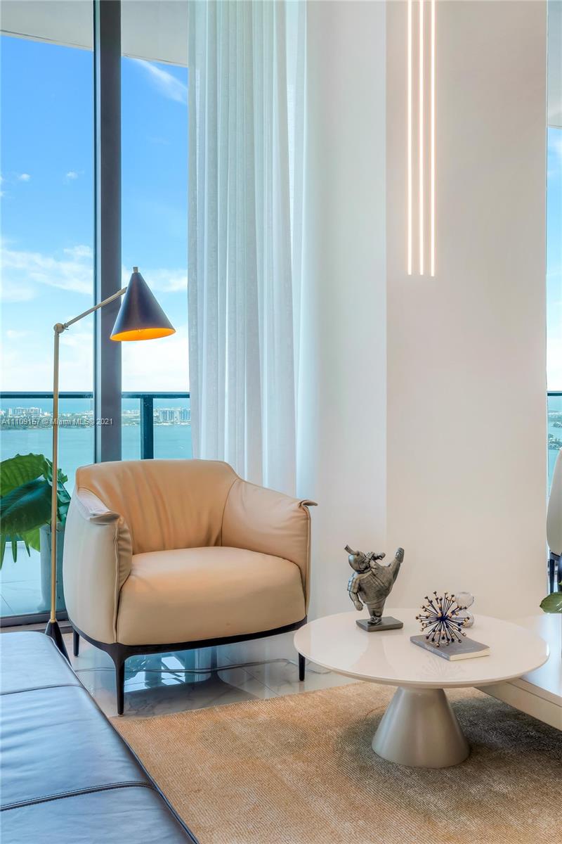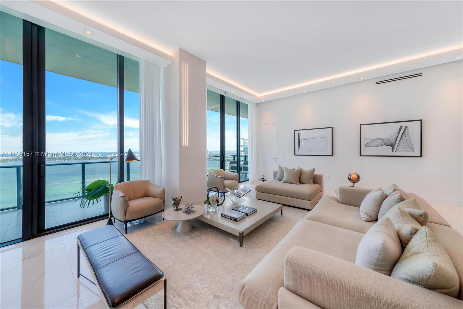 Turn Key Luxury has been re-imagined in this direct bay front sky PH with 12'Ceilings with 2636 SqFt + 428 sqft of terrace luxurious interior and exterior living space.Lavish and meticulously detailed Finely designed.Custom recessed lighting throughout the unit climate controls with digital thermostats motorized drapes & programmed lighting controls Invisibles Italians doors The residence features 2 master suites for a total of 4 Bed+Den/Office 4.5 Bath stunner features private elevator & formal entry outdoor hot tub with views of the Bay and Ocean.Five-star amenities available to residents including Amara Beach Club,Cabanas,Tennis Courts, Library,Wine cellar,Game Room,Spa, Gym,Theater & Business Center.You are steps to Midtown Design District Downtown and only a bridge away from the beach