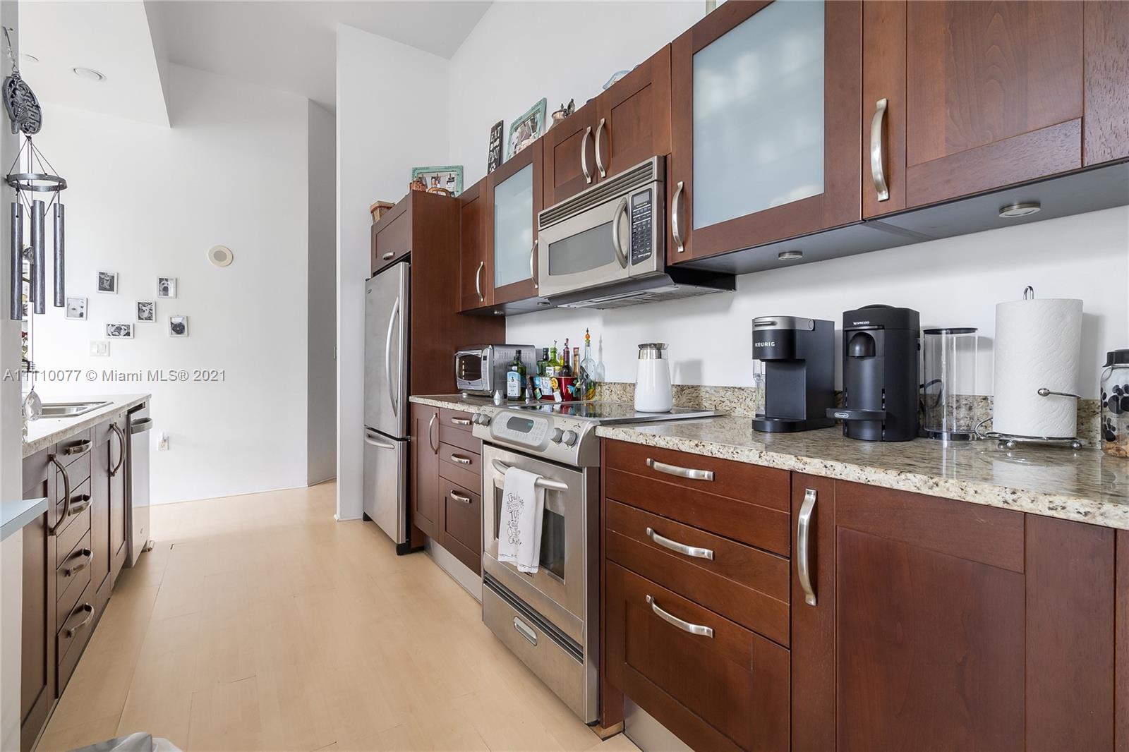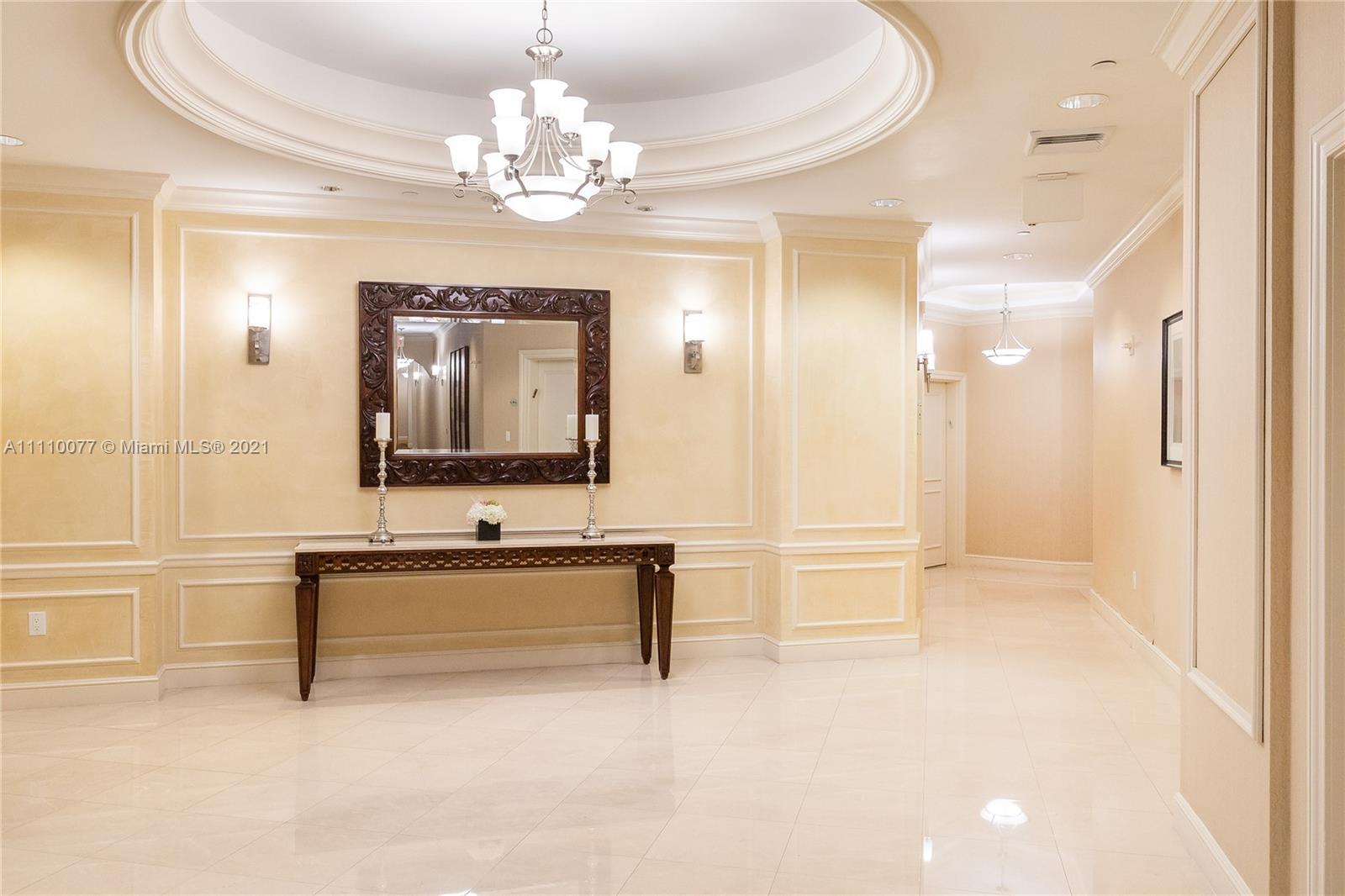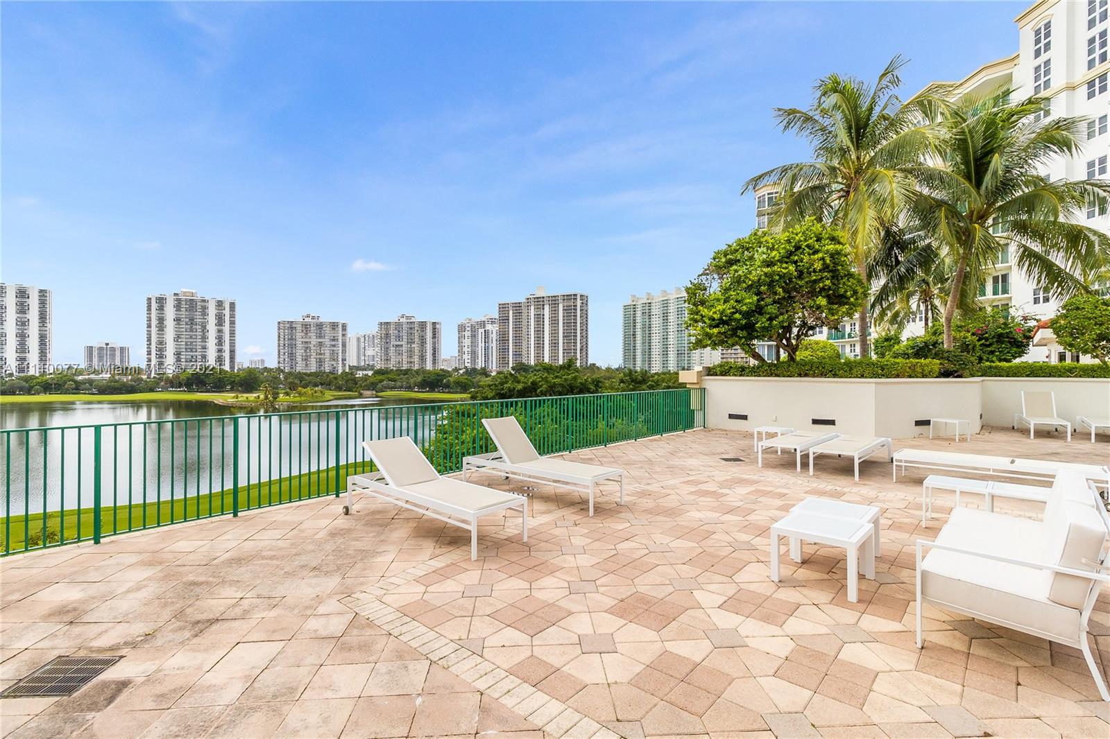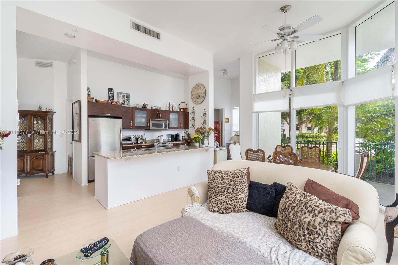 This condo feels like you're living in a house! Incredible open living space with 14ft ceilings and huge windows overlooking lush landscaping with golf course behind it. Spacious patio expands the living space for entertaining. European cabinets with elegant granite countertops and especially long open kitchen counter for seating. Very large bedrooms, walk-in closets, split plan, both with large bathrooms ensuite. Unit is located on ground floor, easy access to the amenities, the lobby, and for walking your dogs. Amazing location on Aventura Circle, walking distance to Aventura Mall, Founders Park, and a drive away to Gulfstream.