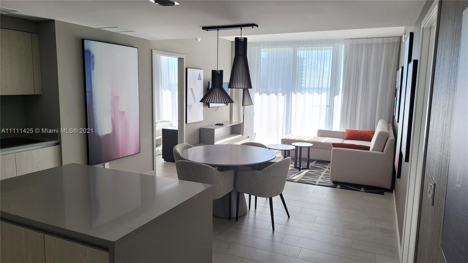 Completely furnished with amazing ocean and bay views. Open European style kitchen with panel refrigerator (sub-zero). The perfect combination as you can use while visiting Miami/Hollywood and you can rent it through the short-term rental program offered by a professional management office service. Luxury amenities include 3 pools, a rooftop area with panoramic views, exterior Movie theater, professional fitness center, BBQ, Tennis courts, Racquetball, Basketball, SPA, Business center, Party Room, and a lot more. Enjoy the service at the beach as well with towels and umbrellas