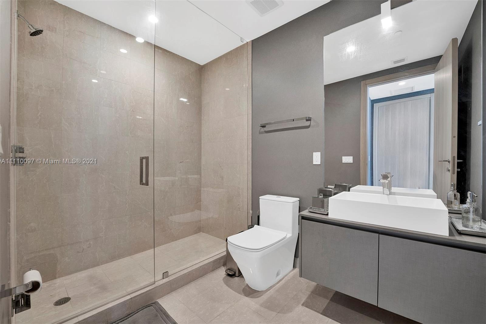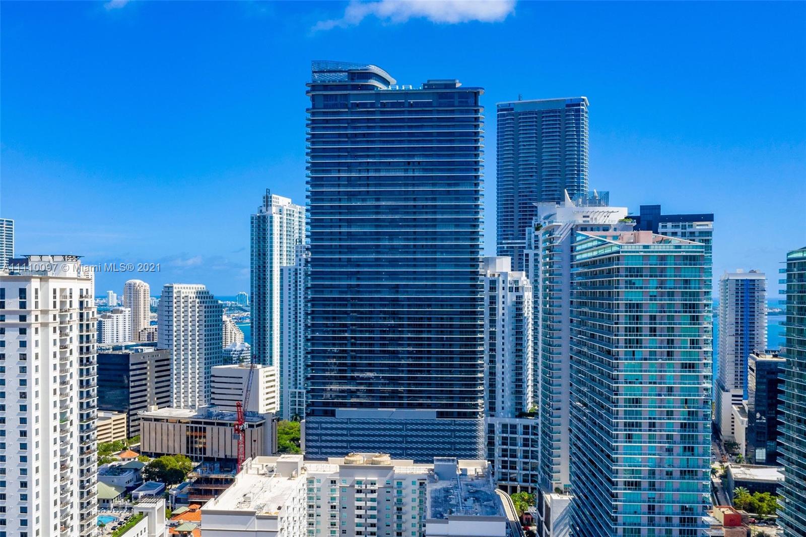 Skyline views from this corner unit at The Brickell Flatiron. 3 beds/3.5 baths with 1,912 SF AC Area plus 601 Terrace, Top of the line Miele Appliances, Snaidero Kitchens & Baths w/ Dornbracht faucets, Italian doors, all electric shade on all rooms, glass enclosed showers and expansive wrap around balconies. Meticulously designed to perfection this unit is move in ready. Flatiron's amenities include the 64th floor rooftop pool with a wellness Center & Spa, and 6,300 sf. gym with a Pilates, yoga, aerobics studio, and a juice bar. Building also includes a lap pool and children’s pool on the 18th floor, a movie theater, billiards and cigar room, wine cellar, and electric car charging stations.this gorgeous building is the ultimate address in town. Unit easy to show!