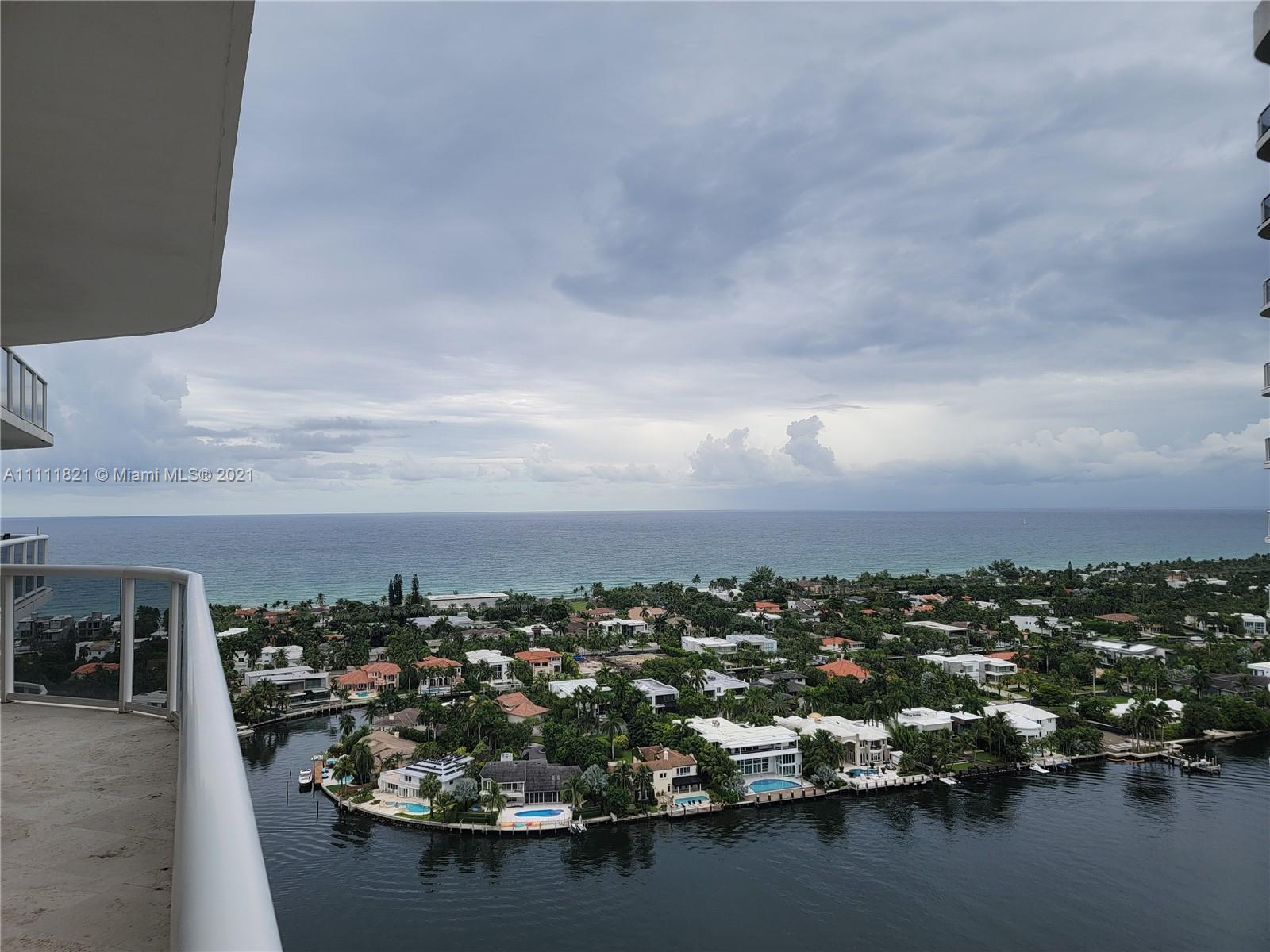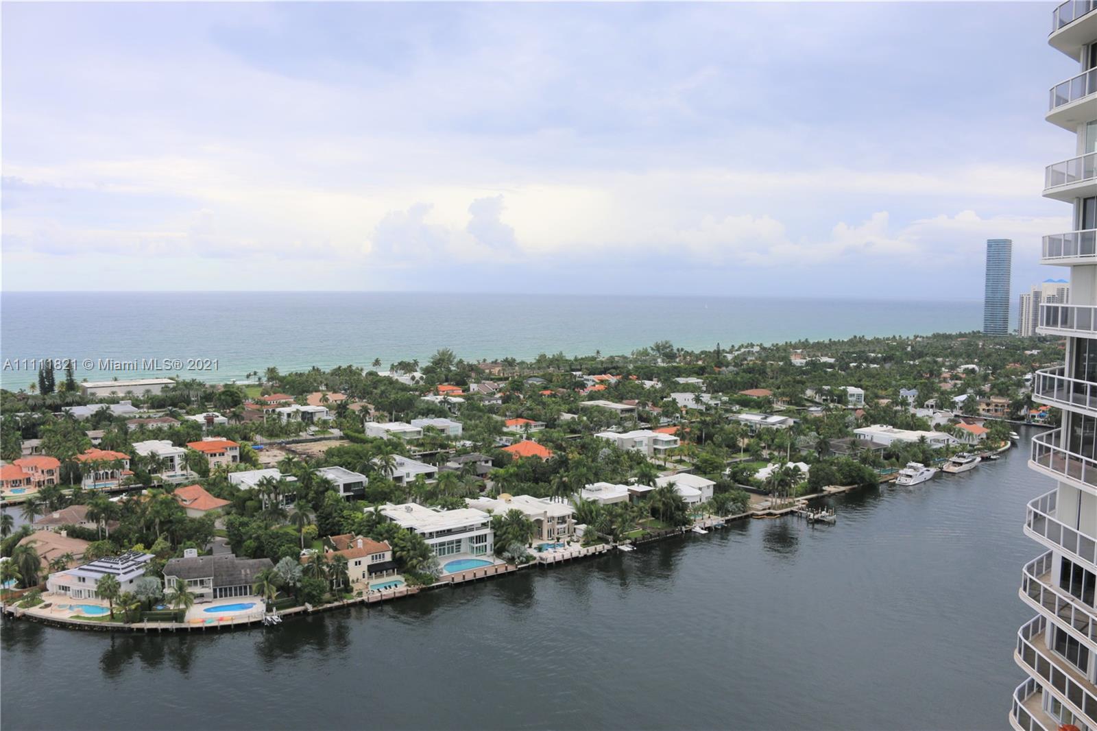 Relax and enjoy in this exclusive, chic and sophisticated waterfront apartment, offer 2,240sf of luxury living space. Spectacular 360 degree panoramic ocean and city views from every window and balcony of this 2/3 unit with marble floors (Den can easily converted in a third bedroom). Private elevator with grand entry. Natural light with ocean views from all rooms. Large laundry room. Resort style, 2 swimming pools, gym, tennis courts . Two covered parking spaces and valet. Great security and location in this prestige complex. Walking distance to Waterways shops, close to Aventura mall. Unit has hurricane shutters. A+ Schools.