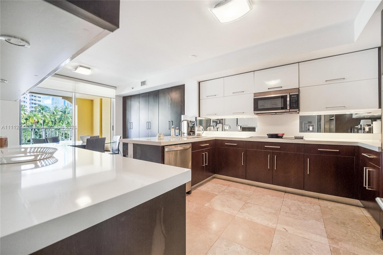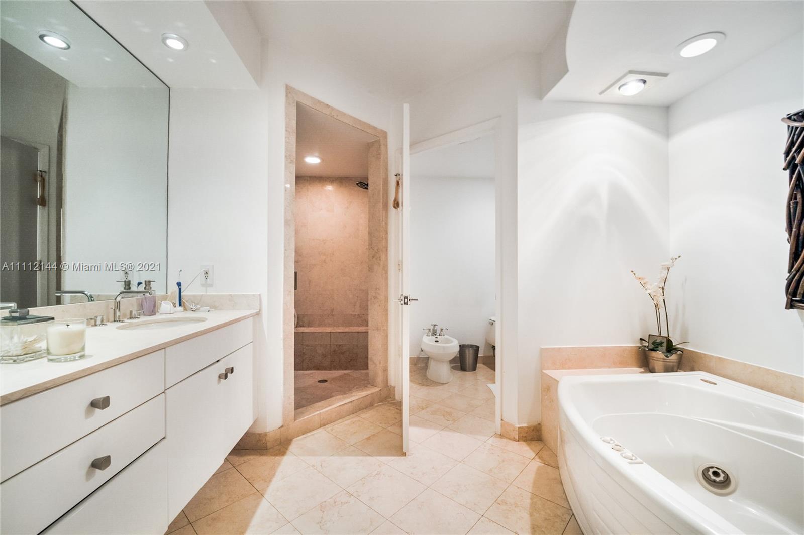 Three bedrooms, three baths apartment with Tropical views to Ocean Club's lush gardens, fountains and lake. Featuring, marble floors through out the entertainment areas and wood floors in the bedrooms, Murphy bed in the Laundry/Housekeepers room, renovated kitchen, built in cabinetry, two terraces and more. East/West exposure offers plenty of light and sunshine.