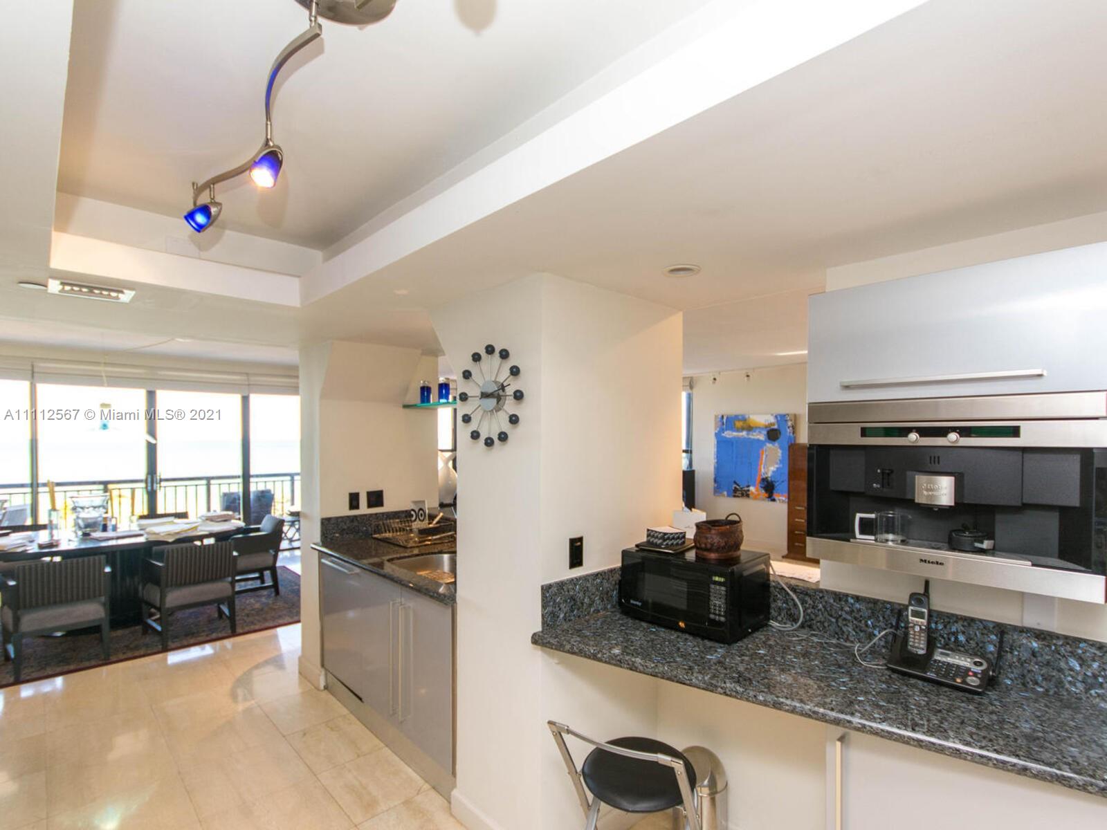 Rare Southeast Oceanfront corner with 2 large terraces and 3 bedrooms 2 1/2 baths. Unparalleled vistas of the Atlantic ocean and south. The is an open kitchen with Granite Counters, Sub Zero Refrigerator and wine cooler, dish washer, central air cond system, washer, dyer in separate laundry room. Entire apartment on sound system with speakers in all rooms, Miele Espresso Maker in kitchen, light fixture over dining room table not included Etched glass sliding glass Arte Deco doors going to office not included