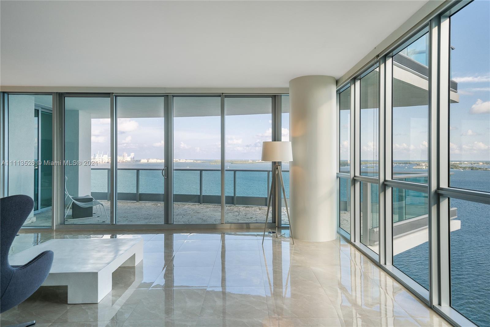 The most desirable line at Jade Brickell! Clearing all neighboring buildings, this southeast corner residence enjoys direct views of the bay, Key Biscayne and beyond. Generous, 1,878 square foot 2 bed / 2 bath + powder room, lives like a home with private elevator foyer, his & her closets and an oversized corner living room leading out to an large terrace. Impeccably renovated, maintained, and move-in ready. Jade is one of the most luxurious, classic, full-service buildings in Miami. A great opportunity amid a tight market!