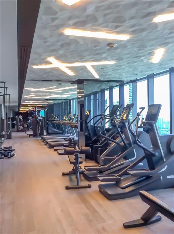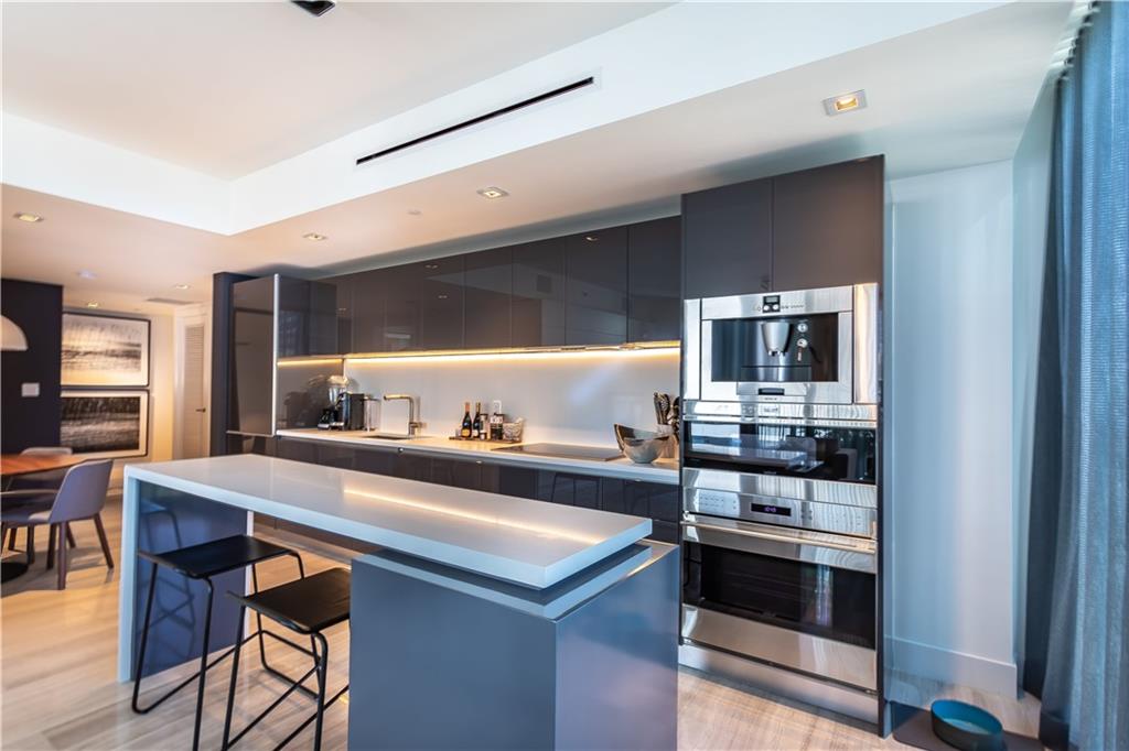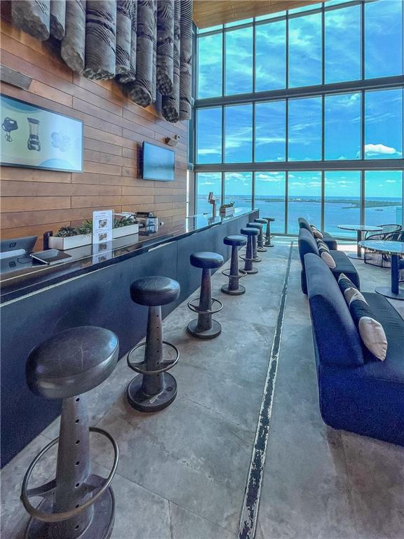 This unit is the largest of the one-bedrooms in the building. 1 bed/1.5 bath corner unit offers panoramic bay and skyline views. Exquisitely Upgraded (Wood Wall & built-in Flat Screen TV, Speakers, Custom Lighting, Window Treatments, Quartz Counters, and Kitchen Island). Expansive balcony with summer kitchen. Marble floors throughout. Italian kitchen cabinetry with top-of-the-line appliances. Be inspired by the 360 panoramic views of the bay, ocean, and city from the Pool and Bar Deck and from the Gym and Spa Club. Resort-style living with concierge services, complimentary bikes, pet walking, and much more!