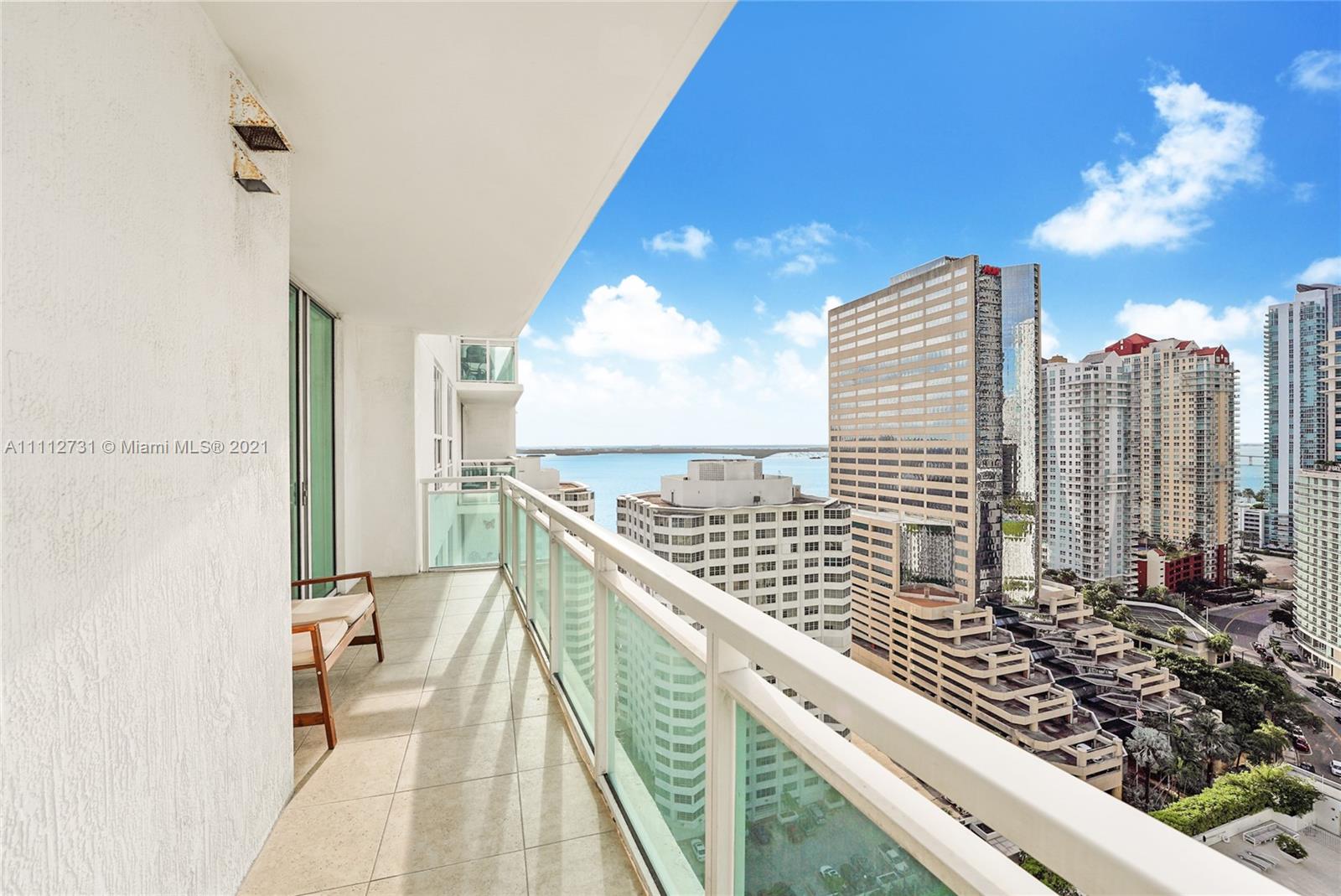 Immaculate 2bed/2bath in the popular 07-line at The Plaza with stunning water views of the Bay, skyline and resort-style pool deck! Perfect split floorplan w/ an open kitchen & brand new large 30"x30" Italian porcelain floors. New washer/dryer, built-out closets, shades & more. Master bedroom features dual closets, double vanity bathroom w/ separate shower & tub. The Plaza is resort-style living w/ amenities including 24hr security & concierge, state-of-the-art Fitness Center, 2 Infinity-edge heated pools, Steam room, Theater, business center, party room, pool table & lounge. Maintenance includes water, basic cable & internet! Brickell's best location and walking distance to everything Brickell has to offer: shopping, restaurants, nightlife, the Brickell City Centre and more!
