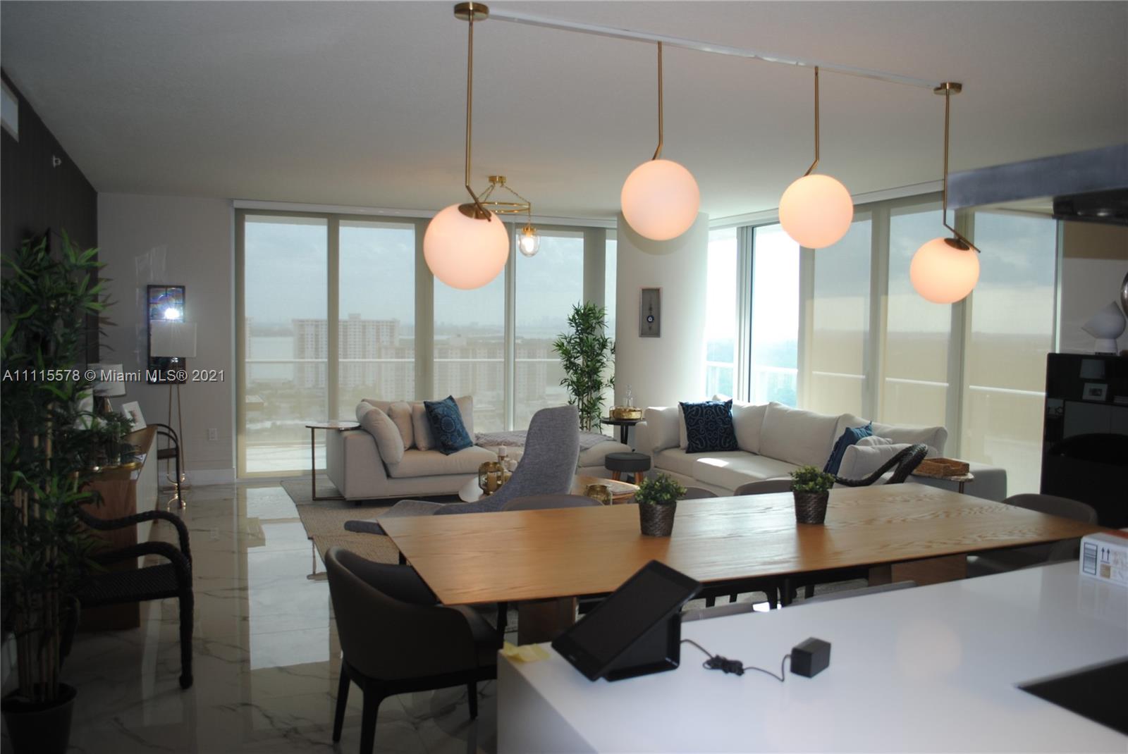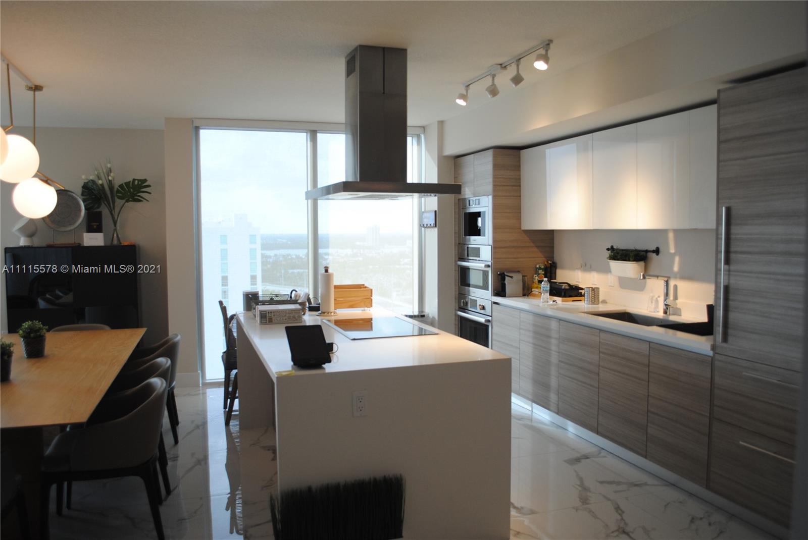 Spectacular 3 Bed/3.5 Bath unit tastefully upgraded / furnished in new building. Corner unit, high floor, large balcony, stunning panoramic views - Intracoastal, Miami Skyline & Ocean. Gourmet kitchen, Bosch & Subzero appliances, Italian cabinets, automated electric blinds. Open floor plan, floor to ceiling impact glass windows and doors, porcelain floors. 5 Stars Amenities - Suite for Guest & Beach Club, Cinema, 4 Pools, Gym, Games Room, Bar, Bistro, Party Room, Playground, Kids Club, 24/7 valet and front desk.