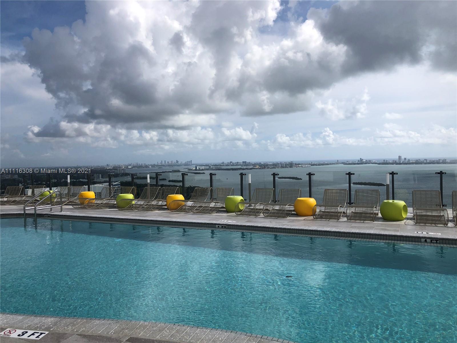 ESPECTACULAR ONE BEDROOM ONE AND A HALF BATHROOMS WITH HIGH CEILINGS AND WATER VIEWS. SPACIOUS LIVING AREA, WALK-IN CLOSET, WASHER AND DRYER IN UNIT. MASTER BATHROOM WITH GLASS ENCLOSED SHOWER SHARED WITH POWDER ROOM FOR EXTRA COMFORT. ITALIAN DESIGN KITCHEN WITH BOSCH APPLIANCES. FULL SERVICE BUILDING WITH ROOFTOP POOL AT 46TH FLOOR. SECOND POOL AT 5TH FLOOR, SPA AND SAUNA, STATE OF THE ART GYM, KIDS ROOM, SOCIAL ROOM WITH BILLIARD AND PROJECTION TV SCREEN. MANAGEMENT ON SITE, ONE ASSIGNED PARKING SPACE. Tenant Occupied until January 1st 2020