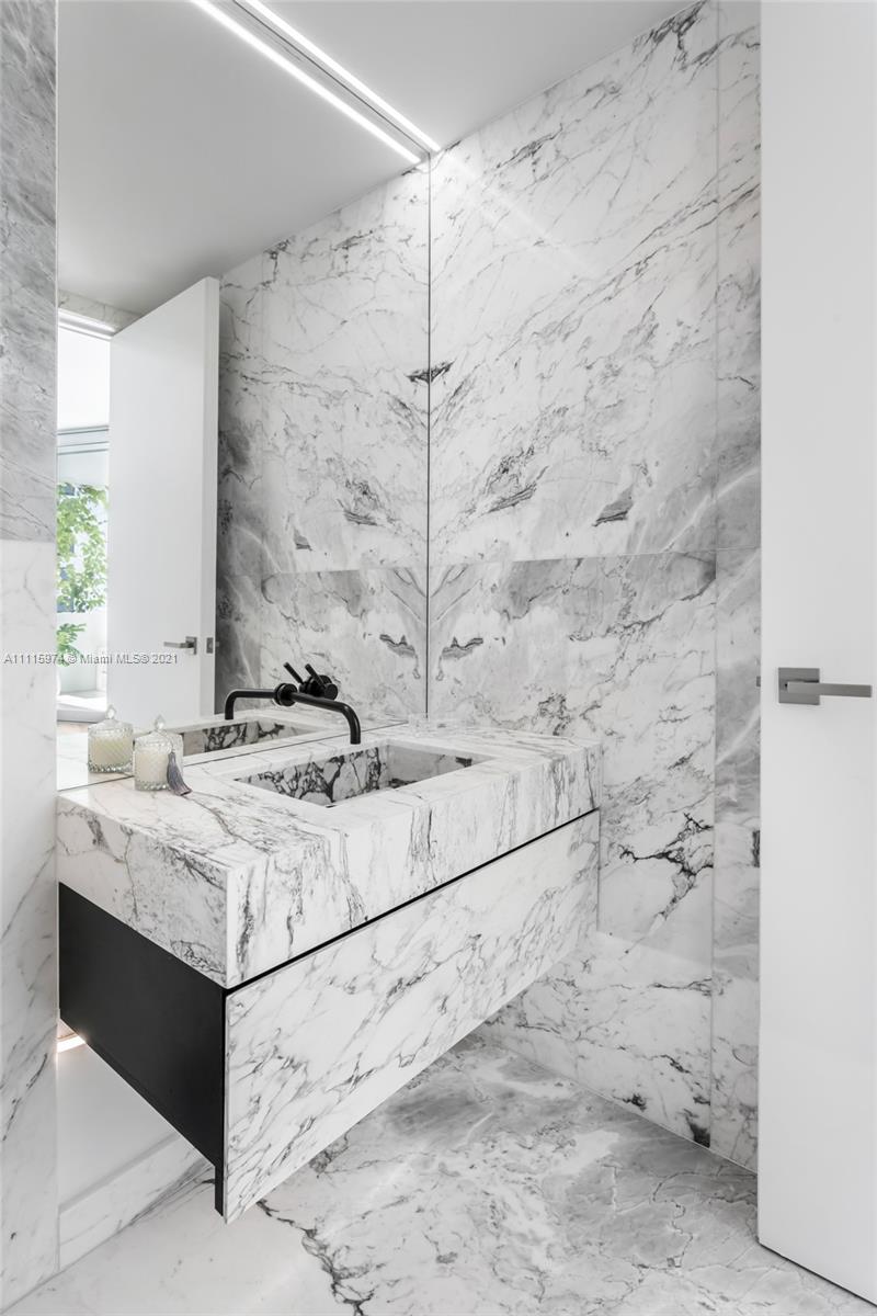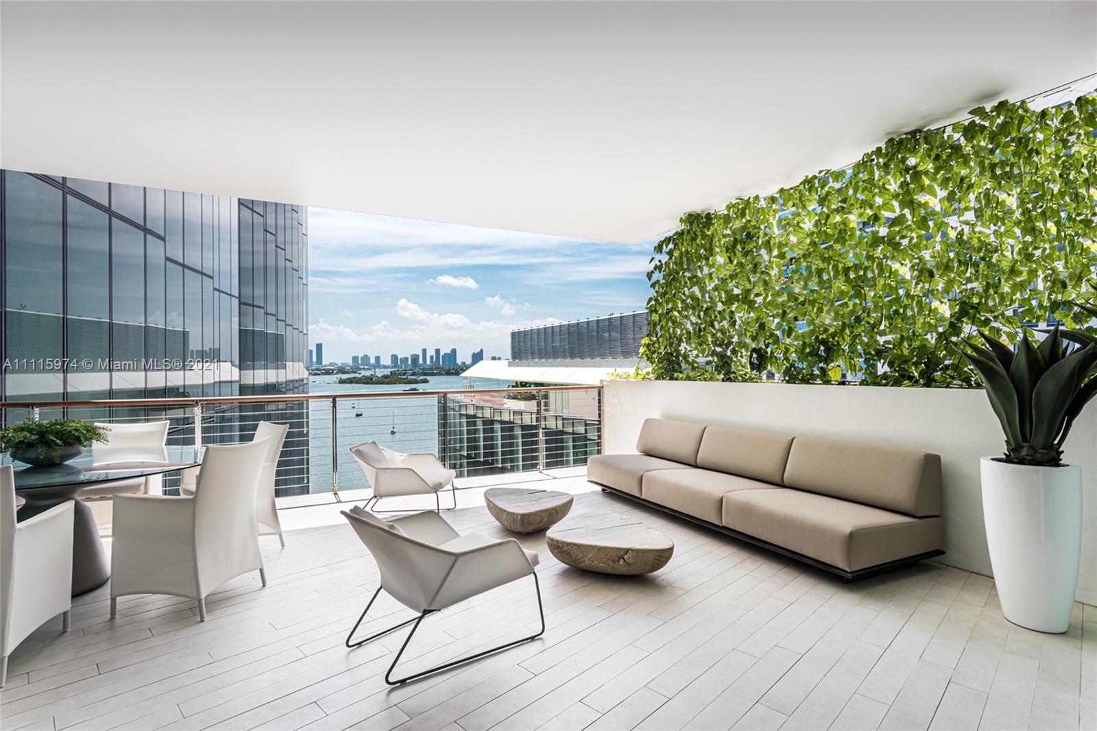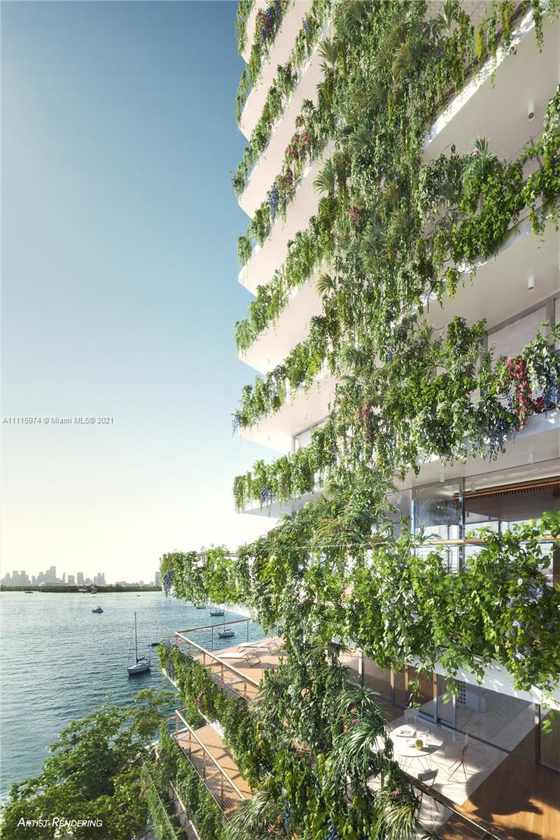 Composed of 59 individually designed waterfront residences around a glittering lagoon, Monad Terrace by Pritzker Winner, Jean Nouvel, provides brilliant light, private outdoor space, climbing gardens, unique sawtooth honeycomb facades & stunning sunset views of Biscayne Bay. Kitchens with dramatic sculptural marble island in Calacatta. Master baths with richly veined, spacious stone countertops, marquetry flooring and tiled walls. Other notable features include custom cabinetry & built-in features, designer fixtures, teak flooring throughout & private elevators. Immediate Occupancy. Photos and Renderings are from model residences.