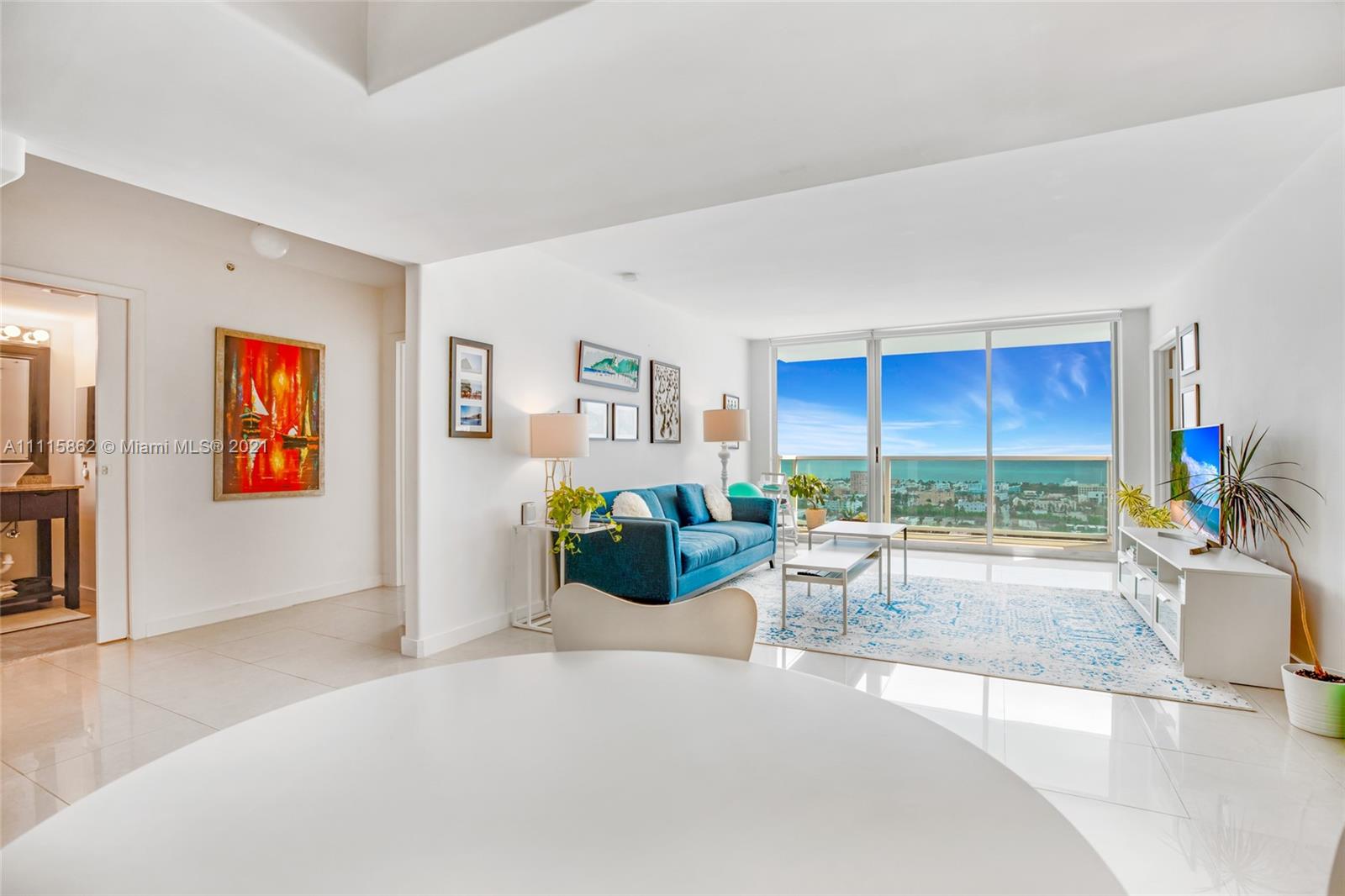 Breathtaking views of the Ocean,Miami Beach and Gov Cut from this totally renovated spacious 2/2. Split floor plan, Marble throughout , Kitchen partially open to the living room with granite counters, W/D and ss appliances. Modern bathrooms with enclosed shower and bath tub. Lots of sun light from every room.The Floridian is conveniently located in one of the best areas of South Beach and offers 5 stars amenities including tennis court , new spectacular lobby , 2 pools , spa , gym , poolside food and beverages.
