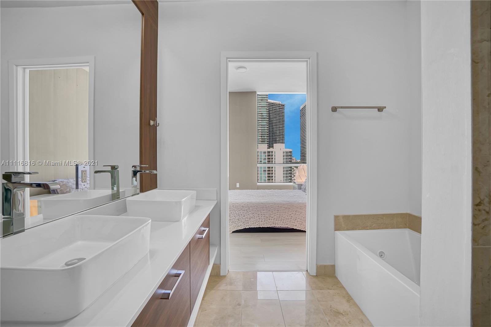 Stunning one-of-a-kind penthouse residence with incredible panoramic skyline and bay views. This impeccable dual balcony condo comes with 3-bed/2-bath, high end kitchen with Bosch appliances and German cabinetry by Impuls. European-style bath fixtures, marble bathrooms, spacious closets, private rooftop terrace with a hot tub. CRIMSON is a Boutique Bayfront LEED-certified building that includes: pool, state-of-the-art fitness center, cybercafé, lounge, movie theater, dog park, concierge services, business center, yoga room, car charging stations and private boardwalk overlooking the intracoastal bay. Centrally located in the booming and trendy Edgewater district, close to designer shops,theaters, galleries, cafes, and restaurants in Midtown, Wynwood and Downtown. Great opportunity!