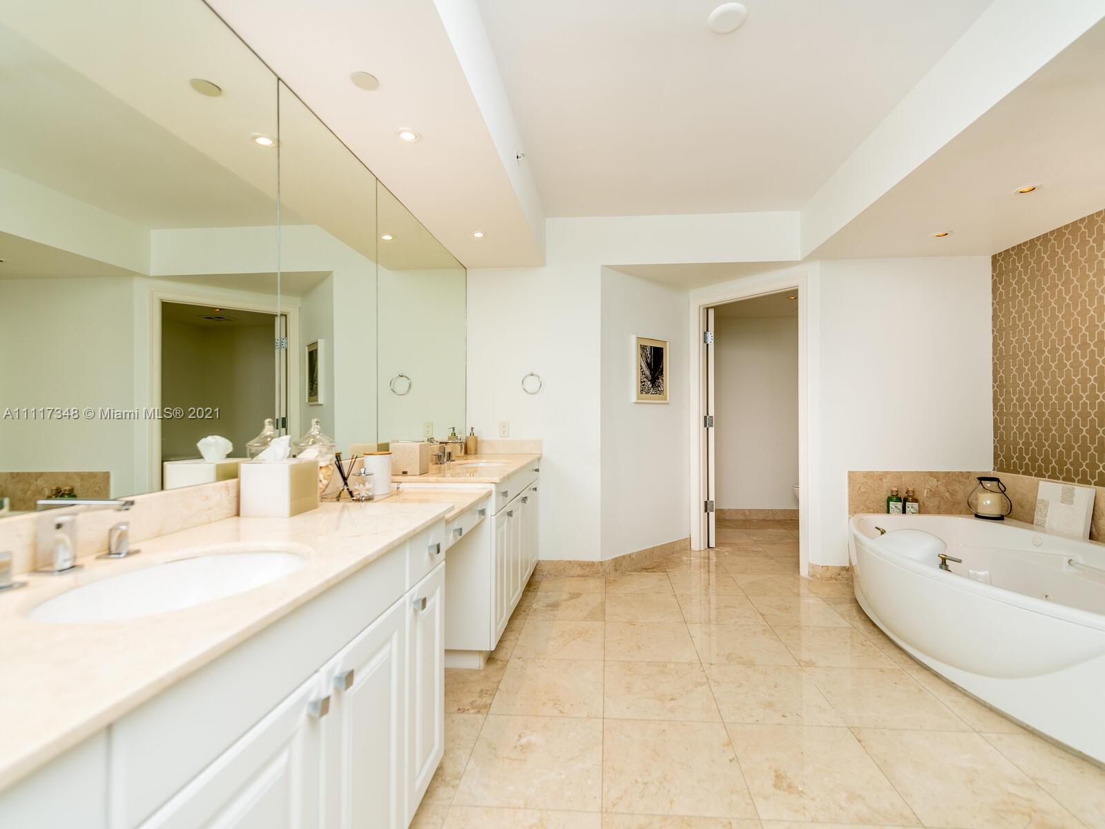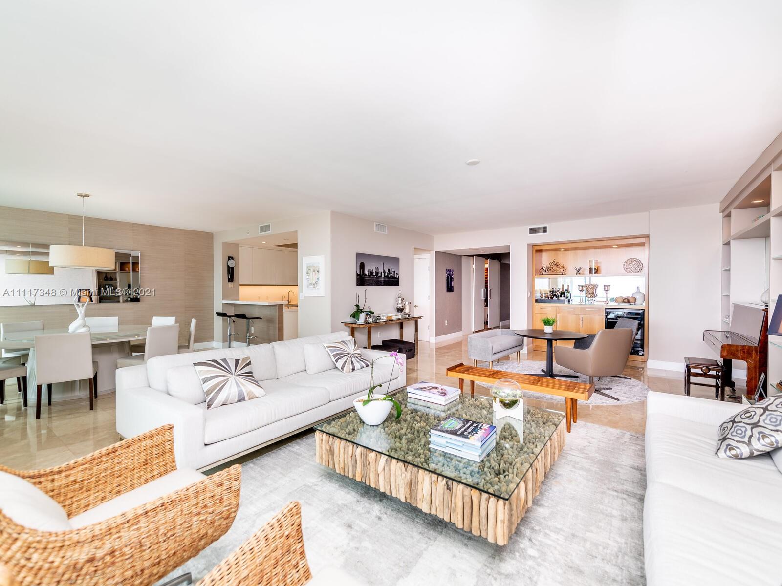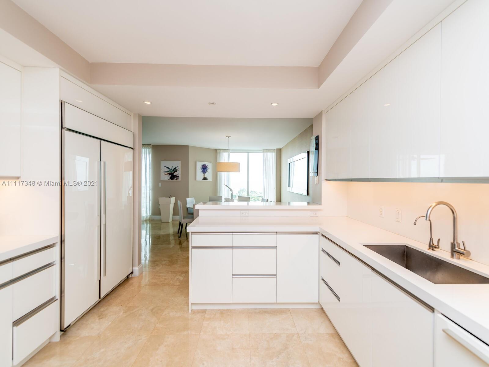Welcome to this elegant flow thru private residence with over 3200 sqft boasting breathtaking ocean and Intracoastal views featuring 3 BR plus Den, 3.5 baths and private elevator. Custom design unit professionally decorated featuring marble floors, custom millwork throughout, designed wet bar with wine cooler, stylish kitchen with natural light, fresh updates, premium appliances (Subzero, Thermador), two ovens, and quartz counters. Walking through the unit you will find an upgraded powder room, custom designed home theater and an over sized master bedroom with custom walk-in closet, linen closet, and sitting space. It also features its own private balcony facing the golf course. Amenities include infinity pool, movie theater, BBQ area, tennis courts and on site exclusive restaurant.