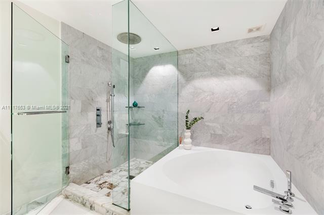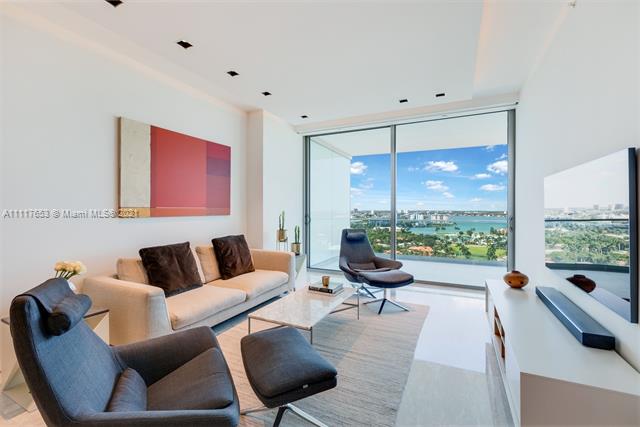 Upgraded flow-through beachfront residence with Ocean & Bay views. Spacious 3,264 SF floor plan & fantastic layout, private elevator, two oversized terraces, 10 foot ceilings, extra wide windows. Located in most desirable South Tower. Italian marble floors in common areas, white oak floors in bedrooms by Oscar Ono, Rimadesio closets throughout and “Sail” sliding doors dividing living room & den, ceiling design by Porsce lighting, doors by German Bod’or. Sleek kitchen by Dada, Calacatta marble countertops and Gaggenau appliances, offers plenty of room to cook and entertain, while enjoying the stunning sunset views from West side terrace. Home sold fully furnished by most exclusive Italian designer brands: living room by B&B Italia, dining & library by Rimadesio, Master bedroom by Poliform.