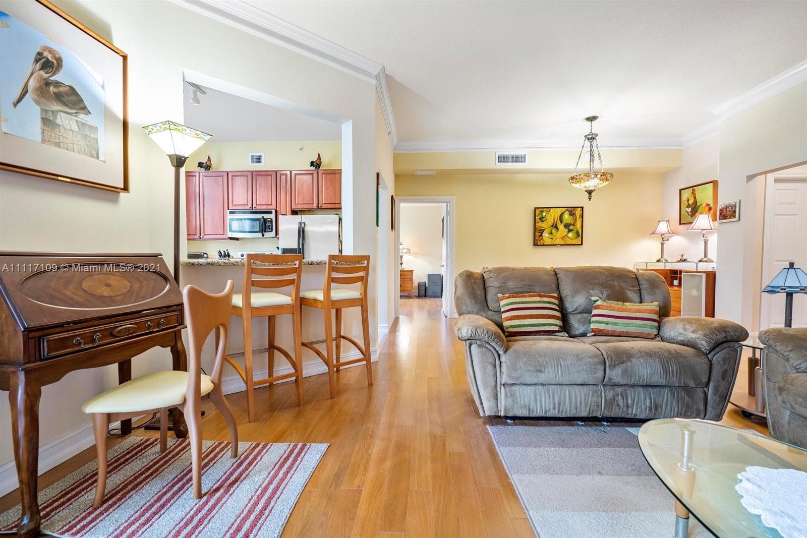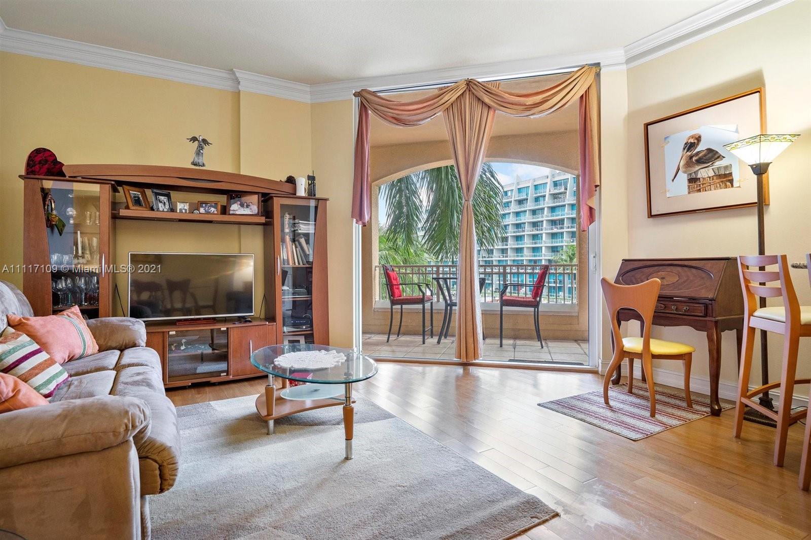 Stunning third floor condo with 2 bedrooms and 2.5 baths and a beautiful view overlooking the water. Gorgeous wooden floors throughout. This residence comes with a washer and dryer, 2 covered parking spots (149 and 151) and a large storage room (unit 369). Alaqua offers 5 star amenities: a newly renovated waterside dock, state-of-the-art fitness center overlooking the water, hot tub, pool, playground, business center, 24-hour security, valet and more. Just a short walk to Aventura Mall, Publix, restaurants and beaches. A+ rated schools and Brightline station at Aventura Mall is expected to be done by Fall 2021 to make travel even easier.