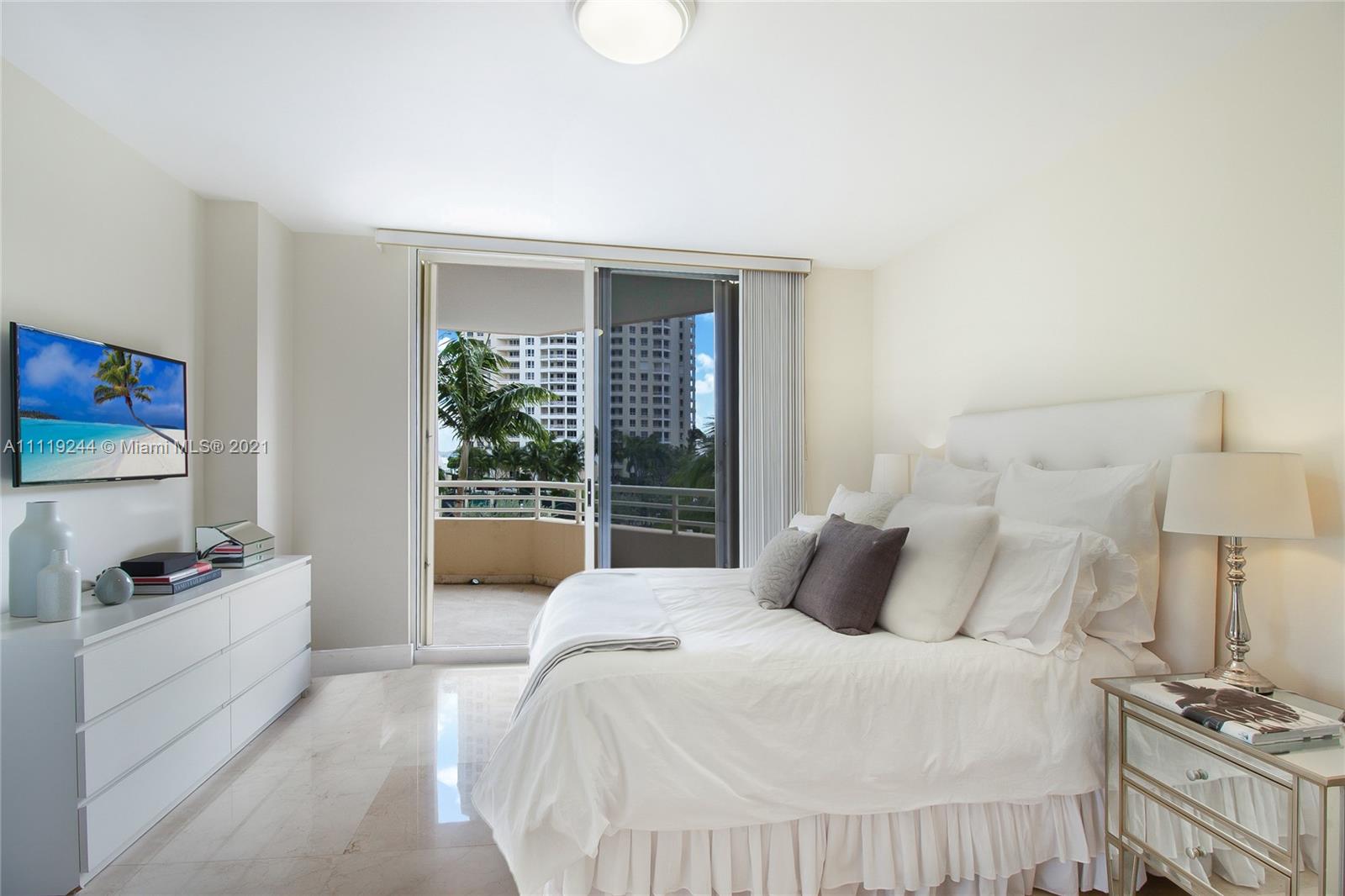 Impeccable & spacious 2/2 on prestigious Brickell Key! Unit features travertine marble floors throughout, 2 assigned parking spots, split floor-plan and 3 balconies. Master bathroom features a separate tub & shower and lots of closet space. Building has COMPLIMENTARY valet service for your guests & has a tropical vacation-like pool deck. Enjoy exclusive Brickell Key amenities; the island walking path, Brickell Trolley, the Mandarin Oriental Spa and plenty of top restaurants within walking distance.