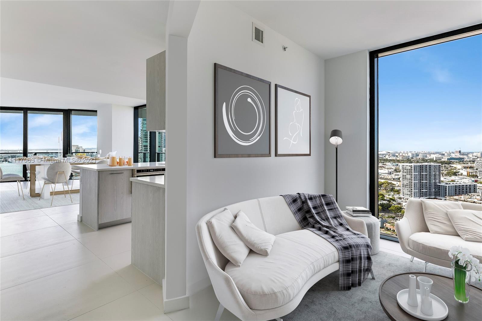 Enjoy breathtaking views from every room of this modern 2 bed / 2 bath + den condo in Paraiso Bayview's. This corner unit residence boasts floor to ceiling hurricane impact windows, white porcelain floors, gourmet chef’s kitchen with top-of-the-line appliances and 2 balconies that allow you to enjoy bay, skyline and incomparable sunset city views. Residence #3008 features a den that could also be used as a formal dining or home office. Paraiso Bayview's is full of luxurious amenities including rooftop pool, sunset pool, tennis court, paddle court, BBQ areas, children’s’ playroom, billiards room, state-of-the-art fitness center, theater, spa, valet parking and concierge services. Centrally located minutes from the Design District, Wynwood, Brickell, the beach and more.