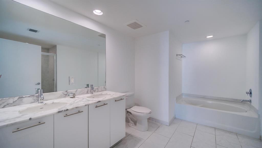 Desirable North-East view from a high floor, bright & spacious 2-Bedroom/2-Bathroom condo with panoramic bay views. European-style kitchen with granite countertops, backsplash, pantry & plenty of cabinetry, and stainless steel appliances, white glass and marble flooring, ample walk-in closets and oversized master bathroom with dual sinks, freestanding tub and a separate shower. Amenities include, movie theater, business center, fitness center, pool & spa, security, and 24/7 valet parking. Close to Mary Brickell Village and Brickell City Centre. Truly one of the best locations in Brickell!
