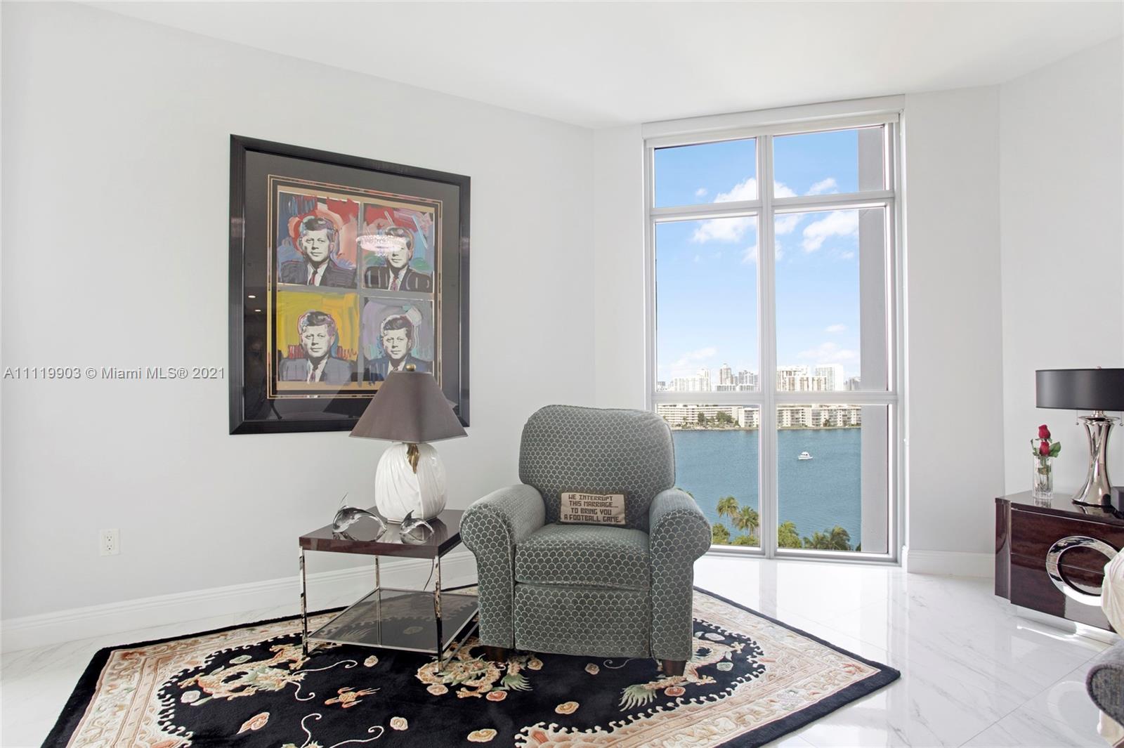 Enjoy waterfront living in a private gated enclave at Marina Palms. This corner unit features stunning city & water views with floor to ceiling impact windows, 2 bedrooms + den, porcelain floors, Snaidero cabinetry with Subzero & wolf appliances. Private marina has 112 boat slips accommodating up to 100 ft with ocean access minutes away. Enjoy aquatic activities or join the boat club membership! Luxury building with endless amenities. Centrally located to world class shopping at Aventura Mall, fine dining restaurants, beach, state park, 30 min to MIA & FLL airport & much more.