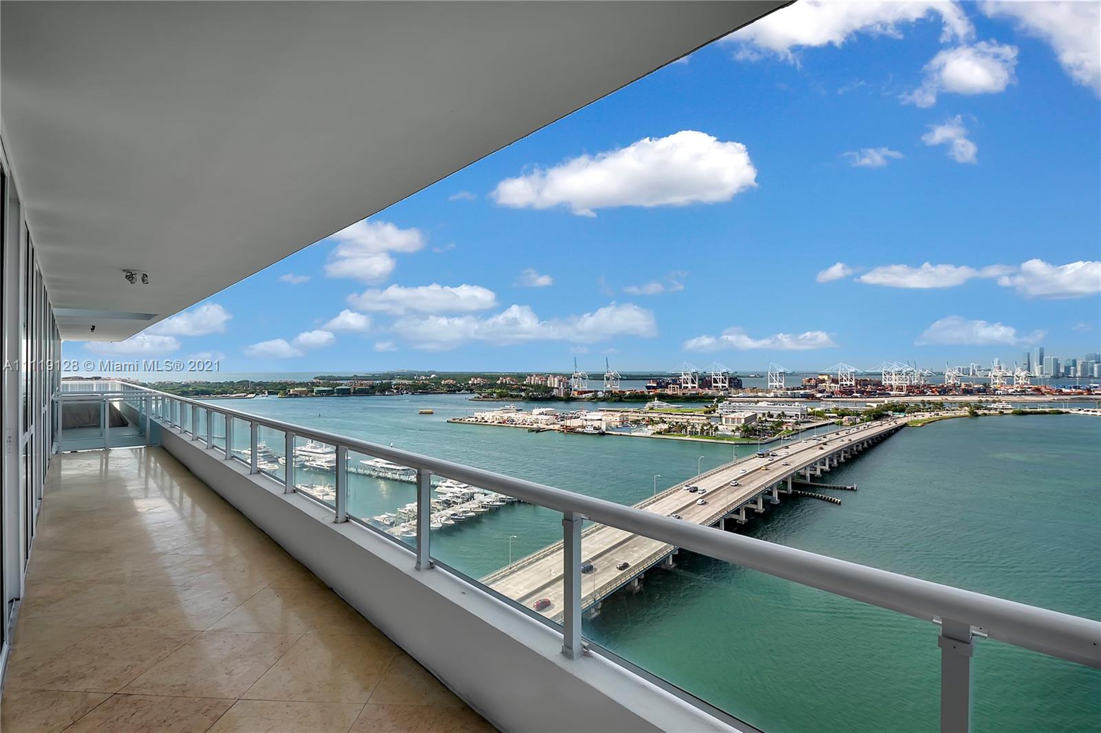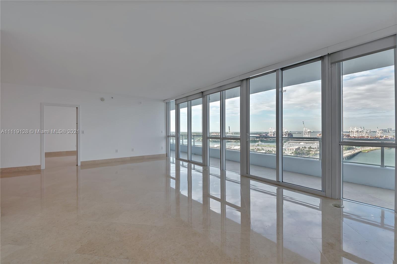 Awe inspiring water views from this large 2 bedroom + large den(third room) condo in prime South Beach location! 3 Full bathrooms. Split Plan featuring stunning views throughout the unit with floor to ceiling glass panels! Large Master bedroom with his/hers closets and ample bathroom with separate tub and shower. 2nd bedroom has two closets and large in-suite bathroom. Third room may be used as office, guest room, formal dining or as additional bedroom. Third bathroom serves extra room and social areas. Polished Marble floors complement the views from this 1,929 sf unit with large balcony and private terrace. Full service luxury building with 24 hr security, valet, fitness center, sauna, steam and amazing pool deck! Steps away from shops, fine dining and world class entertainment!