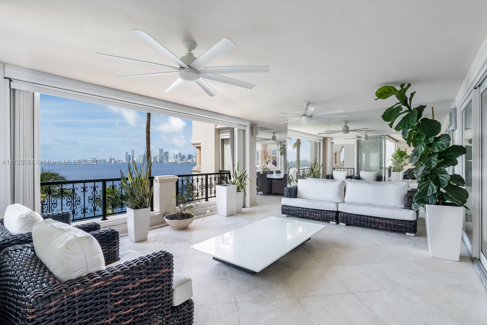 Spectacular unit with breathtaking views of the bay and downtown Miami sky line! This unit exudes luxury and encompasses, 4 bedrooms, 5.5 baths, 1 staff room and 6,120 sqft. Beautiful open layout with large living room, formal dinning room, his/her master closets, wine cellar, expansive kitchen with family room, impact doors and windows, lutron light system, and marble floors throughout. The unit also comes with 4 parking spaces, 1 golf cart space and 1 storage unit. Enjoy 5-Star amenities at a private membership-only club which boasts a Beach Club, private beaches, a 9-hole, golf course; 17 tennis courts, two deep-water marinas; a variety of casual and formal dining venues; a full-service spa, salon and fitness center!