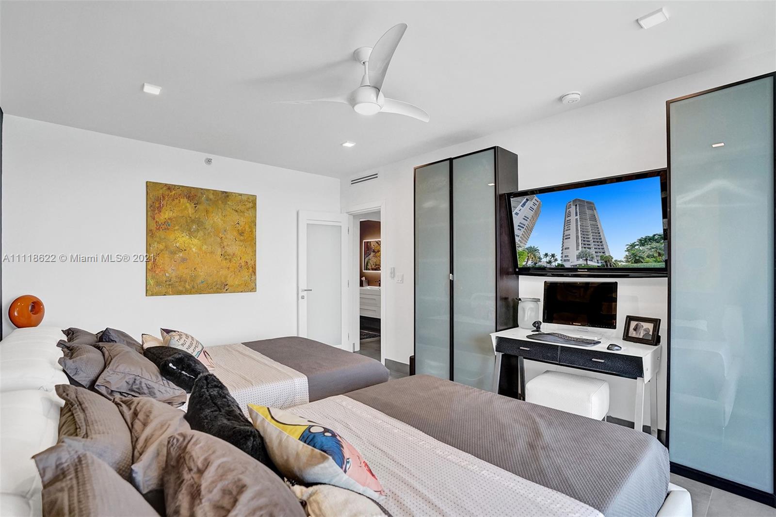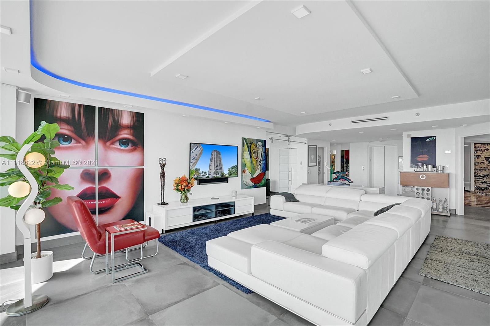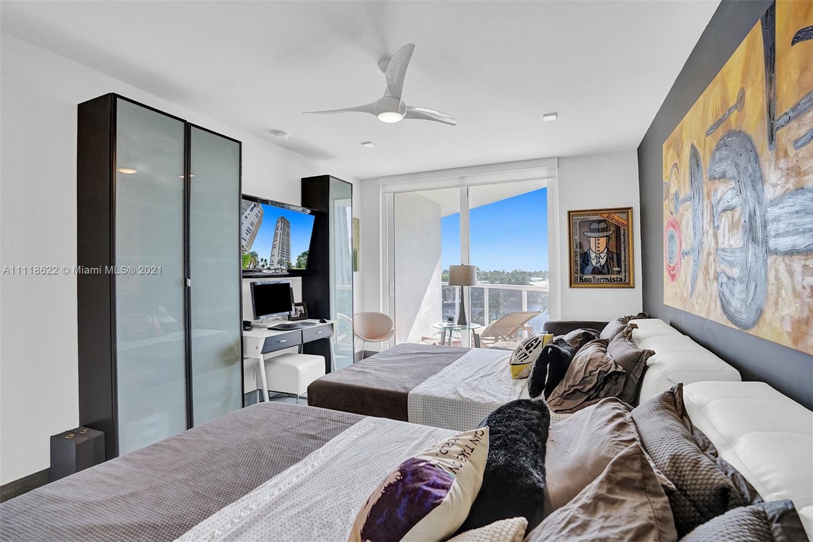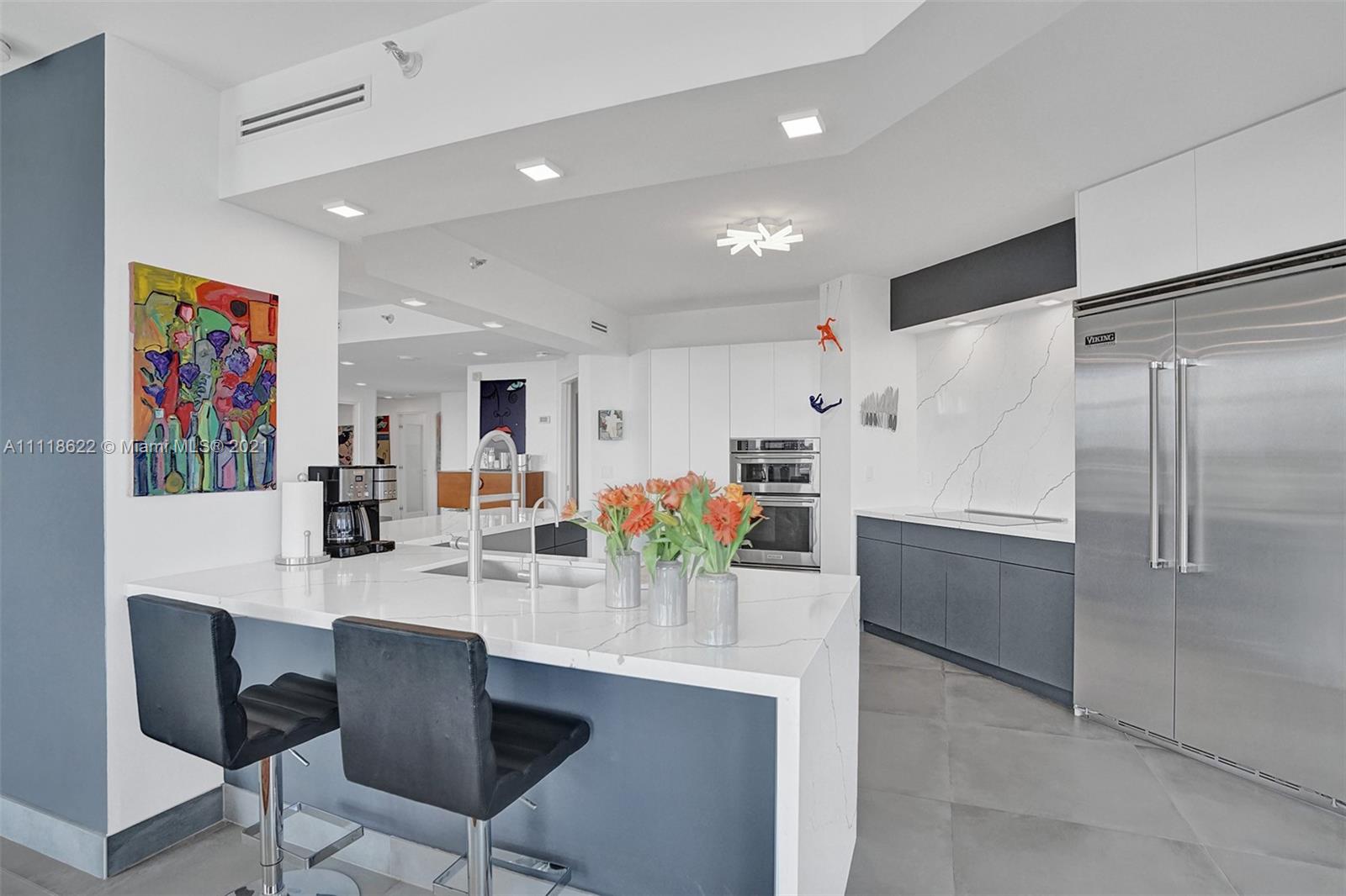 This impressive contemporary residence surrounded by Awe-inspiring water views. Fully remodeled unit with incredible outdoor space accessible from every room. Features porcelain tiles and recessed lighting throughout. LED colored lighting surround in main room. Electric shades. A stylish kitchen that flows through to the dining room. Stainless steel Viking refrigerator & Kitchen Aid appliances, Reverse Osmosis water filter, white & grey cabinets, quartz counter tops & back splash. 3 bedrooms, 2.5 luxurious baths. Master bedroom with walk-in robe & ensuite, modern free standing oval bathtub, separate glass shower with elegant porcelain tile. Extraordinary Smart home/electronics features. One Island Place, a luxury gated resort style community that has direct access to the Waterways Marina.