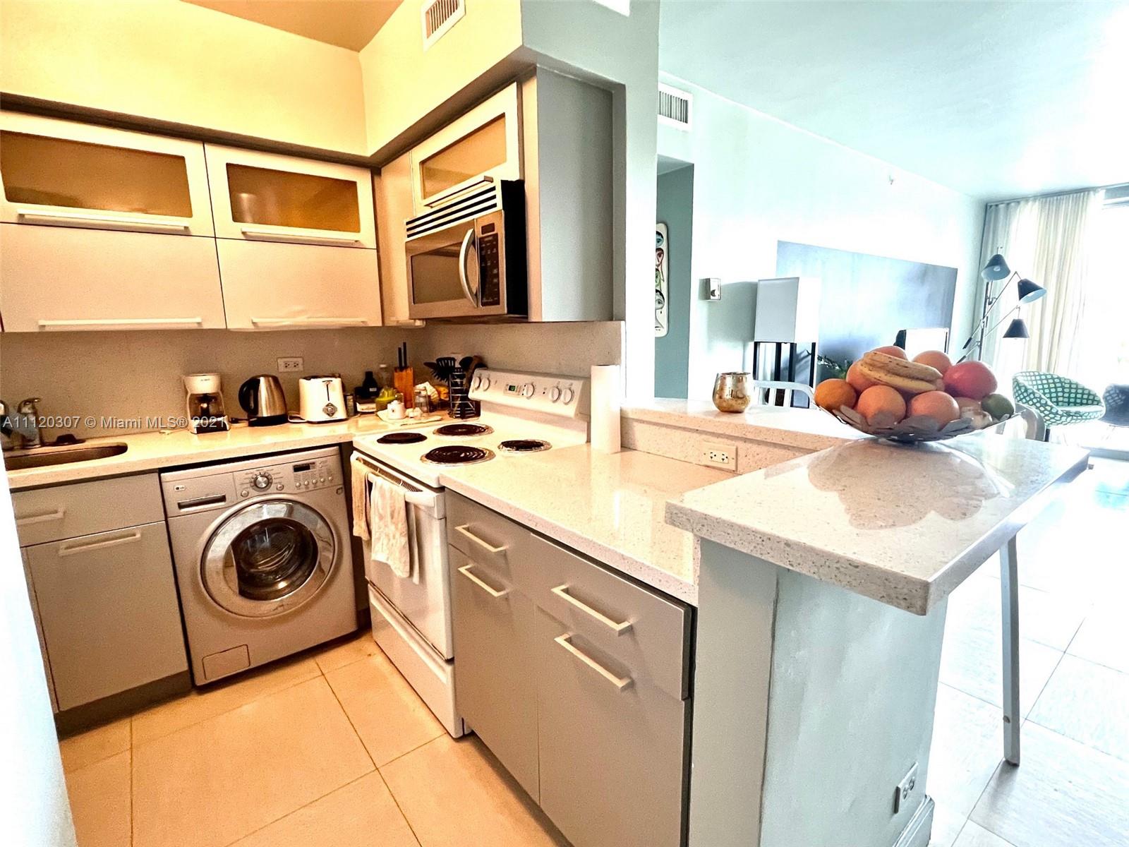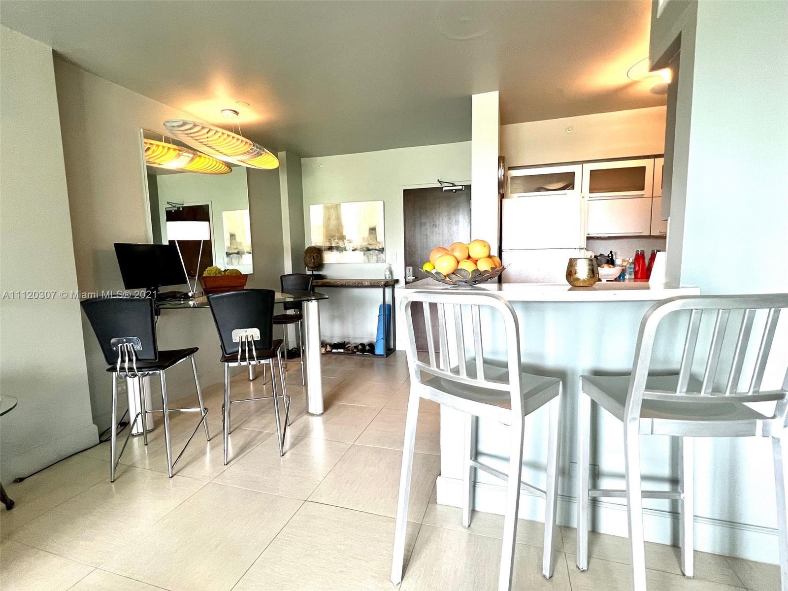 Renovated 1 bedroom 1 bath with direct bay views. Perfect for monthly rentals, 30 day minimum, 12 times a year. Income property or live and work from home. Walking distance to Lincoln Road shops, restaurants, beach and more. The building offers 24 hr security, State of the art gym, convenient store, restaurants and bar with pool service, doggy park, cleaners, valet parking AND this unit has parking space included, covered underground. Best views from this centrally located condo, great for investors. A tenant is place already, but can live with a 60 day notice. A must see!