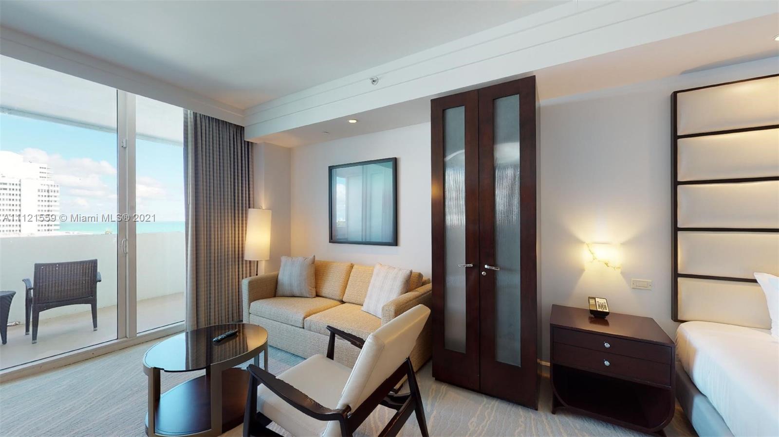 Enjoy the world-renowned lifestyle at Fontainebleau Miami Beach and generate income through the condo-hotel program. This spacious Jr Suite is located in the premiere Sorrento Tower and provides incredible views of the pool grounds and Atlantic ocean. As an owner, you will enjoy 24-hour white-glove service from the Fontainebleau staff, access to Lapis spa & a state-of-the-art fitness center, and priority access to award-winning restaurants, onsite entertainment venues, and beach amenities. Maintenance includes: AC, local calls, electricity, valet + daily free breakfast in the owner’s lounge. This unit is currently enrolled in the hotel rental program and financial statements are available upon request. Showings are available by appointment.