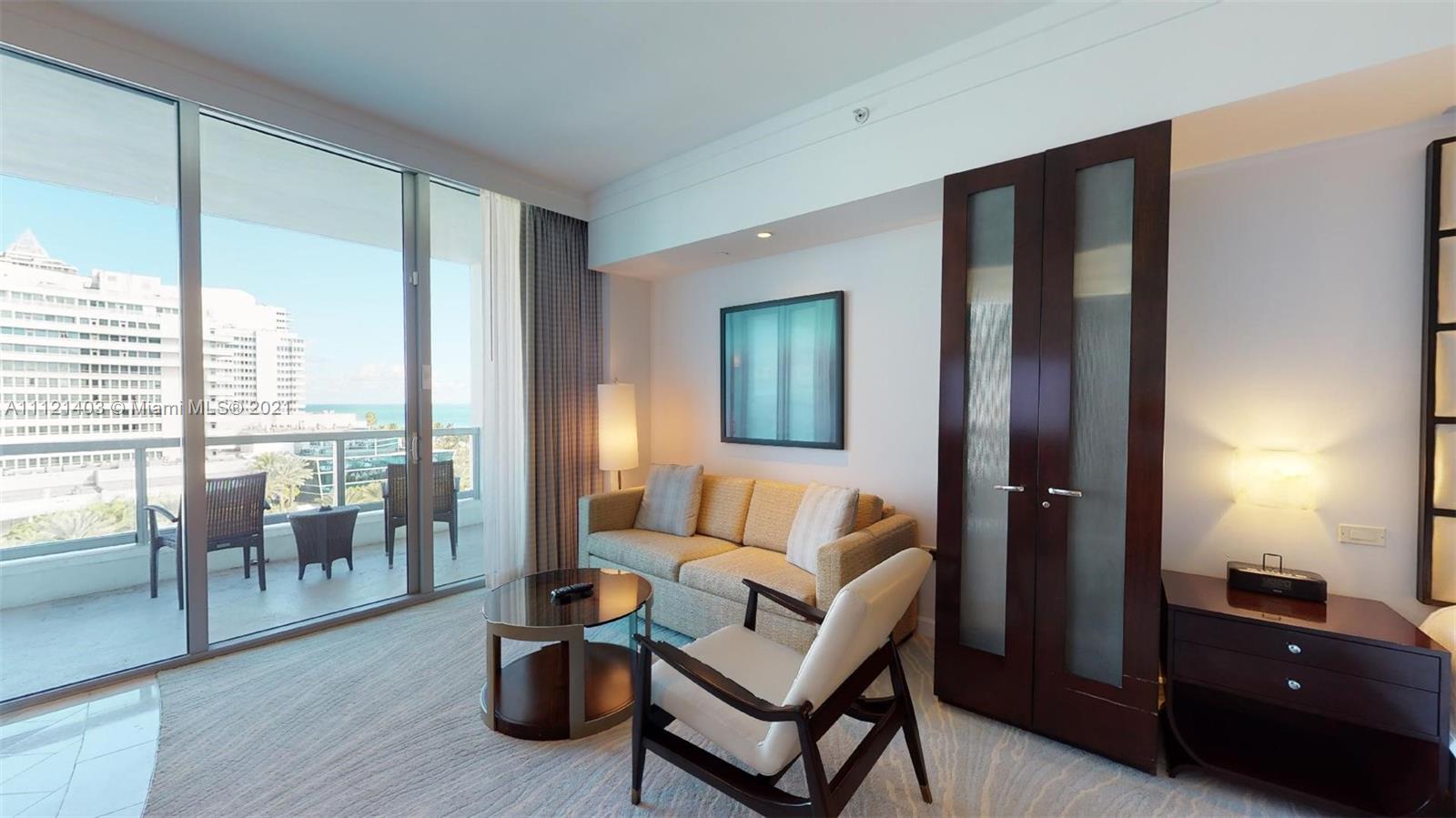 Enjoy the world-renowned lifestyle at Fontainebleau Miami Beach and generate income through the condo-hotel program. This spacious Jr Suite is located in the premiere Sorrento Tower and provides incredible views of the pool grounds and Atlantic ocean. As an owner, you will enjoy 24-hour white-glove service from the Fontainebleau staff, access to Lapis spa & a state-of-the-art fitness center, and priority access to award-winning restaurants, onsite entertainment venues, and beach amenities. Maintenance includes: AC, local calls, electricity, valet + daily free breakfast in the owner’s lounge. This unit is currently enrolled in the hotel rental program and financial statements are available upon request. Showings are available by appointment.